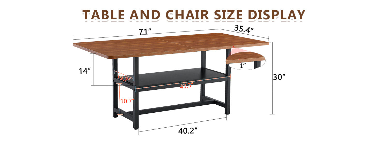 - Top Construction: 1-inch thick MDF tabletop composed of four walnut-textured panels — scratch-resistant, wear-resistant, and easy to clean