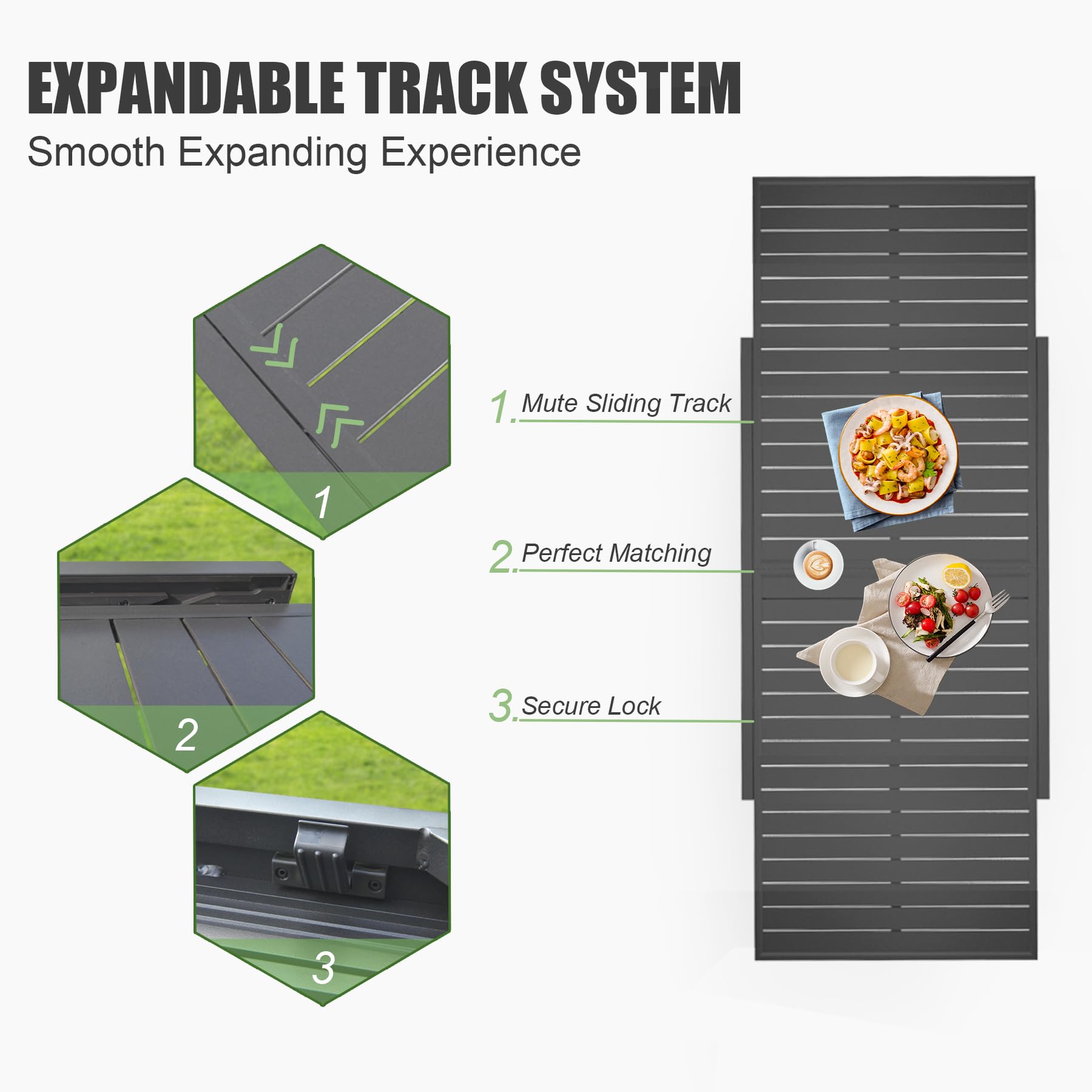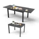 Upgrade your outdoor dining with a versatile, space-saving table designed for effortless entertaining and everyday use. Crafted from durable aluminum with a sleek dark-gray finish, this extendable dining table combines modern style with practical performance—perfect for patios, porches, gardens, or indoor bistro spaces.