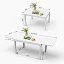 - Premium Aluminum Frame: This outdoor dining table frame is made of E-coating aluminum and it is lightweight yet sturdy. With its weather-resistant and corrosion-resistant properties, it can withstand outdoor elements.