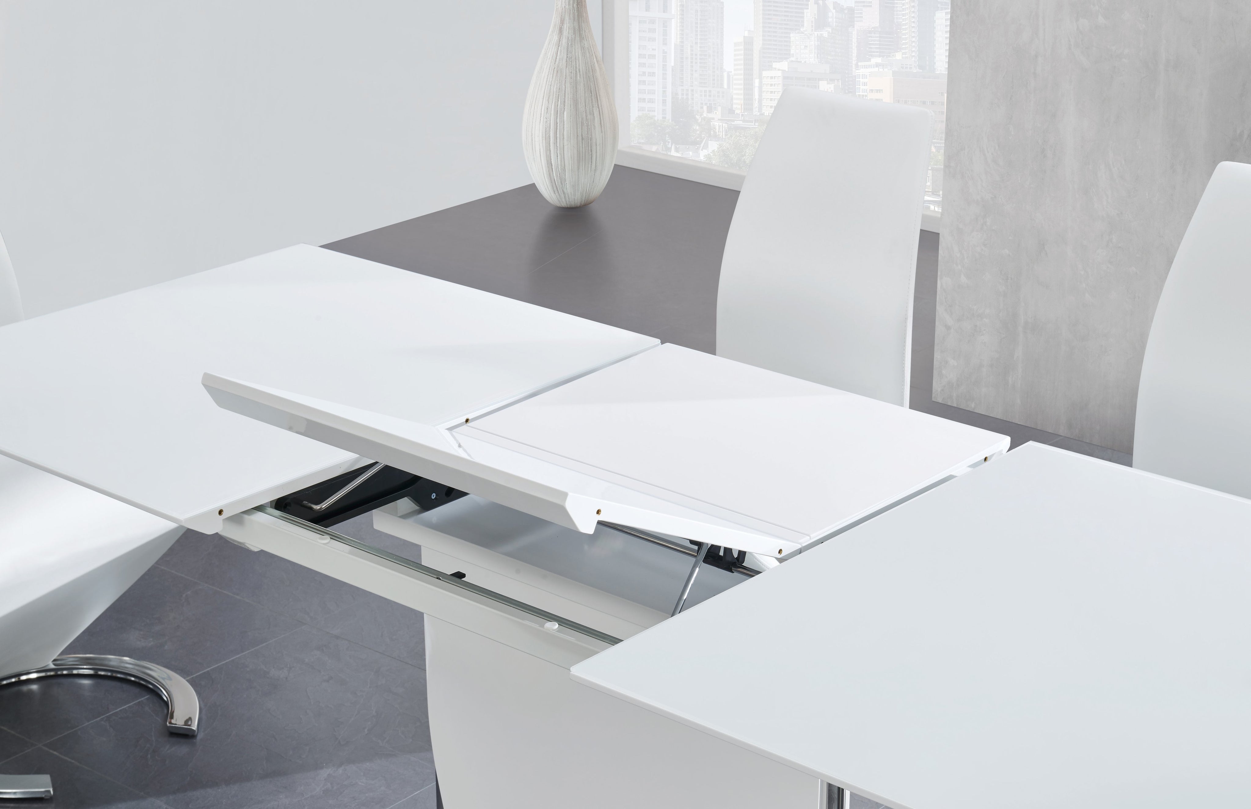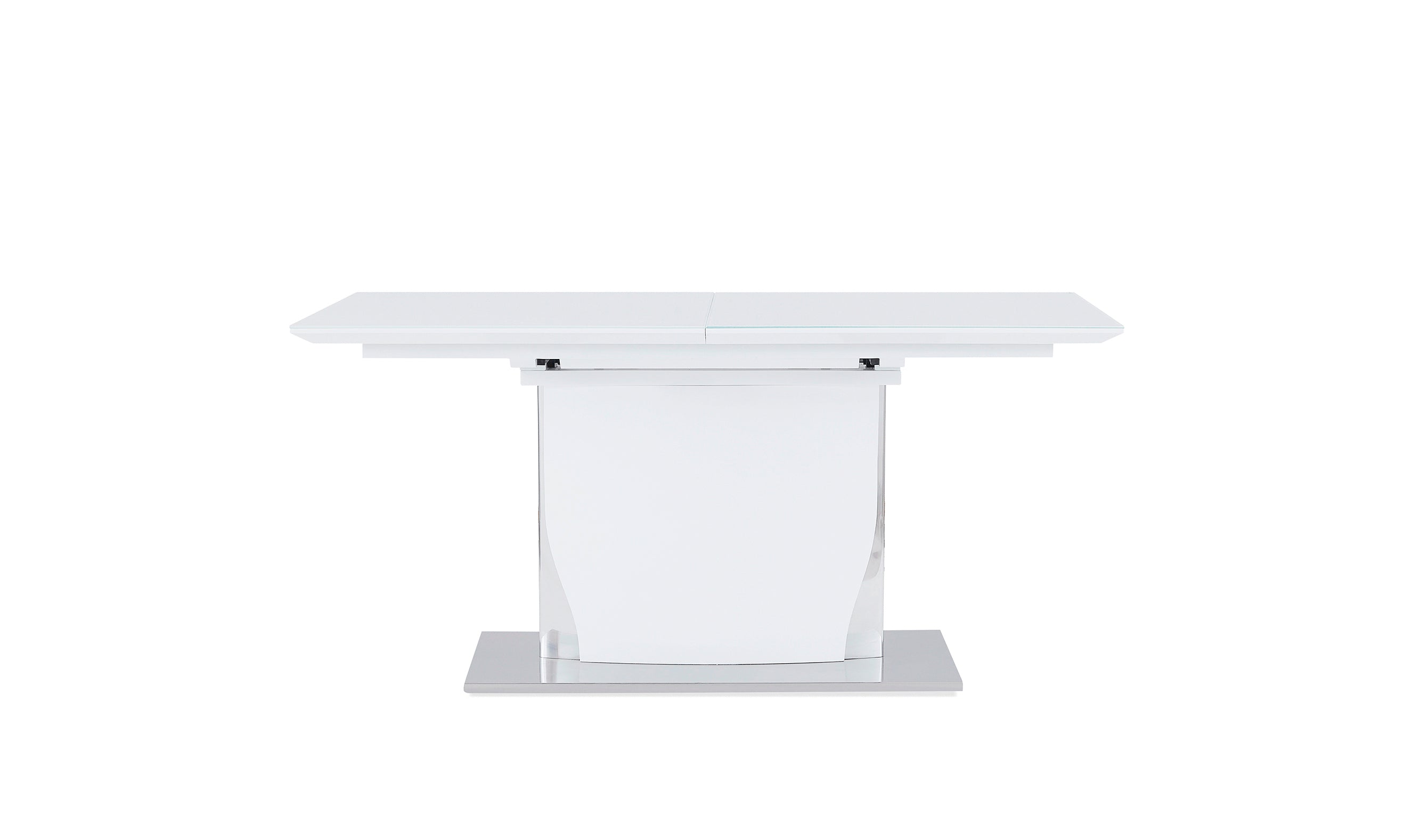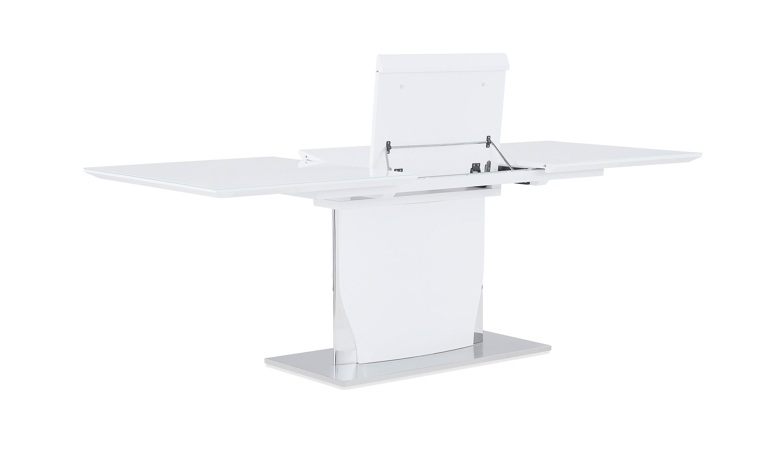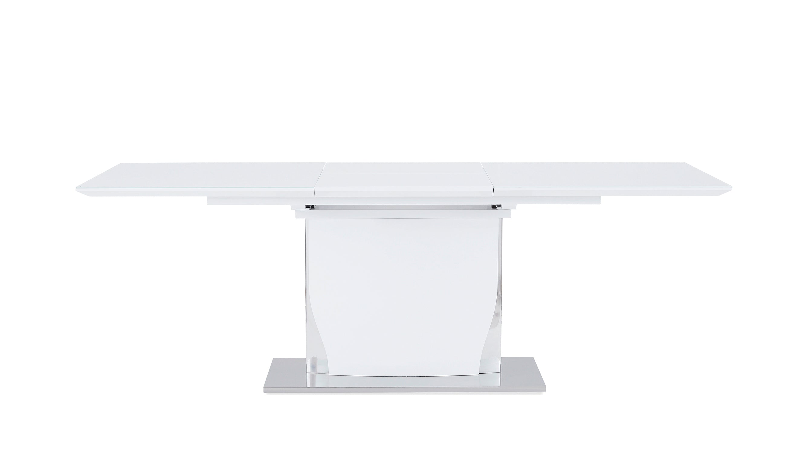 Elevate your dining space with the AUDI dining table — a contemporary centerpiece that blends high-gloss elegance with practical engineering. Crafted from solid wood and MDF, this streamlined white table offers a refined look and durable performance for everyday meals or entertaining, while its smart storage and sturdy metal base ensure long-lasting stability and convenience.
