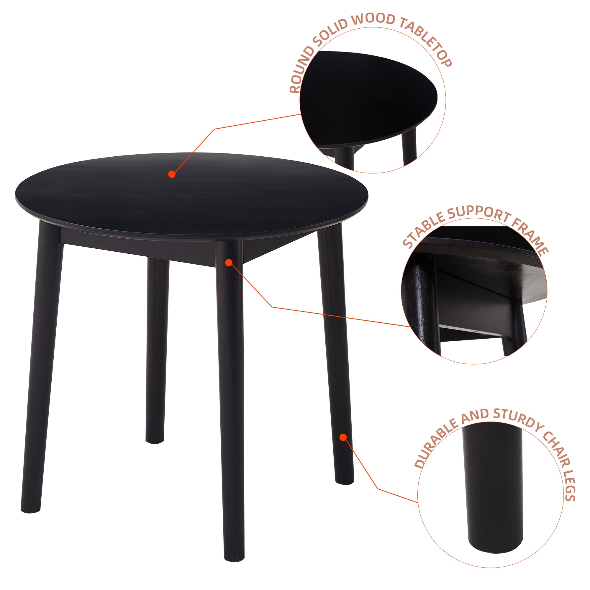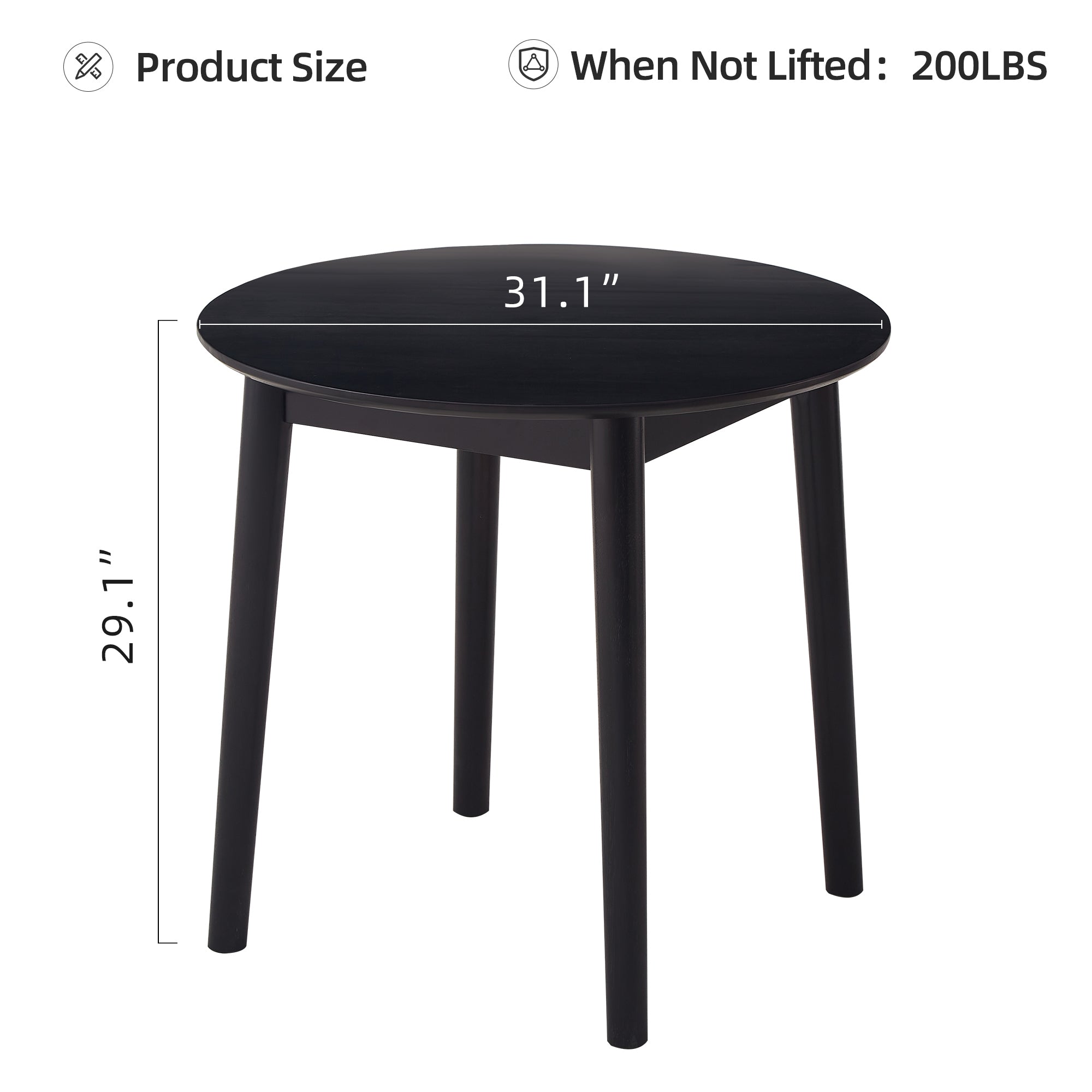 - Size and weight: Round dining table with a diameter of 31.5 inches, the solid wood dining table is designed as a stable structure with four legs and can hold 200 pounds of evenly distributed weight. It can be used comfortably in a small family for 2-4 people