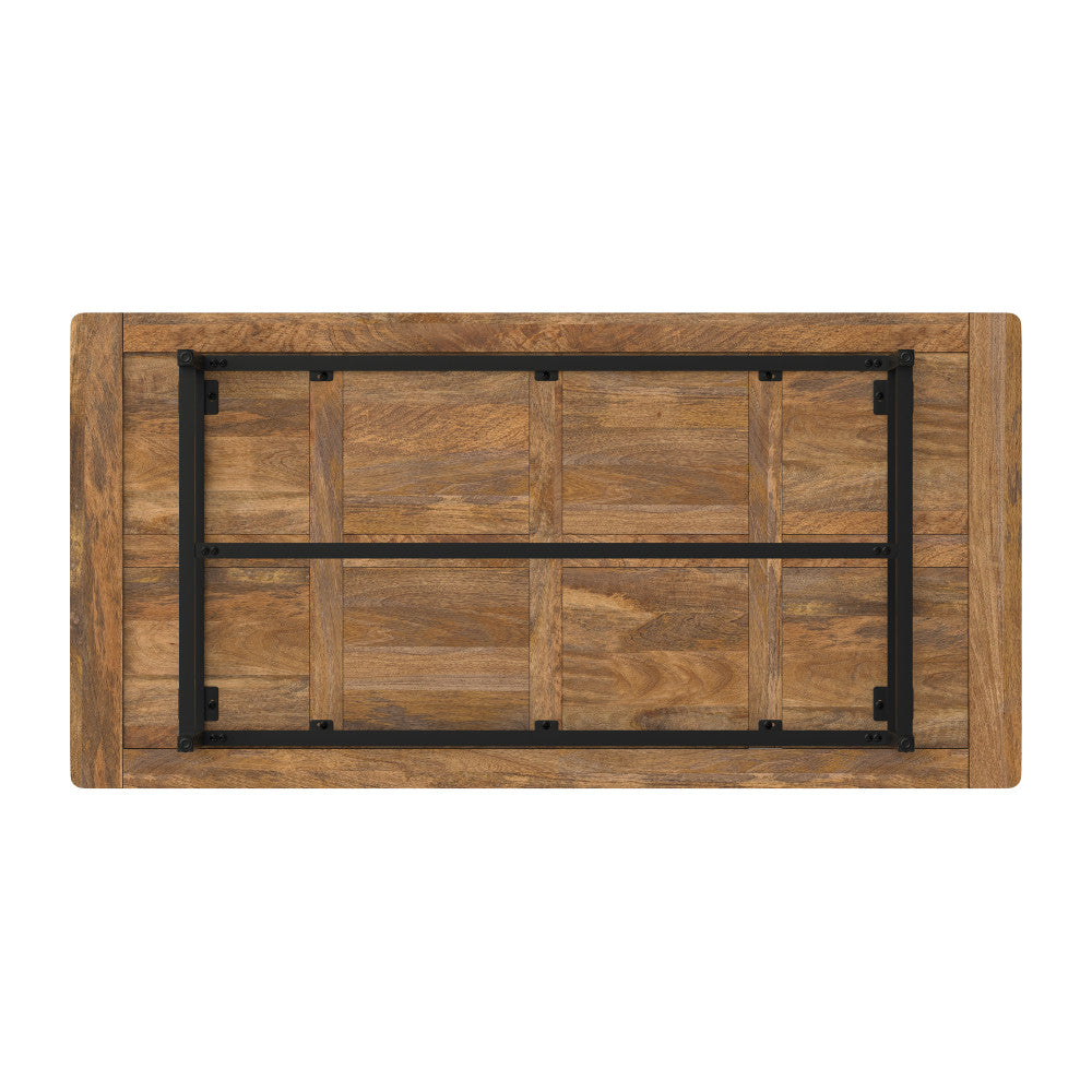 - Made with sustainably sourced solid mango wood in a Burnt Wax finish, the thick tabletop is constructed with tongue-and-groove panels that create a framed, grid-like pattern.