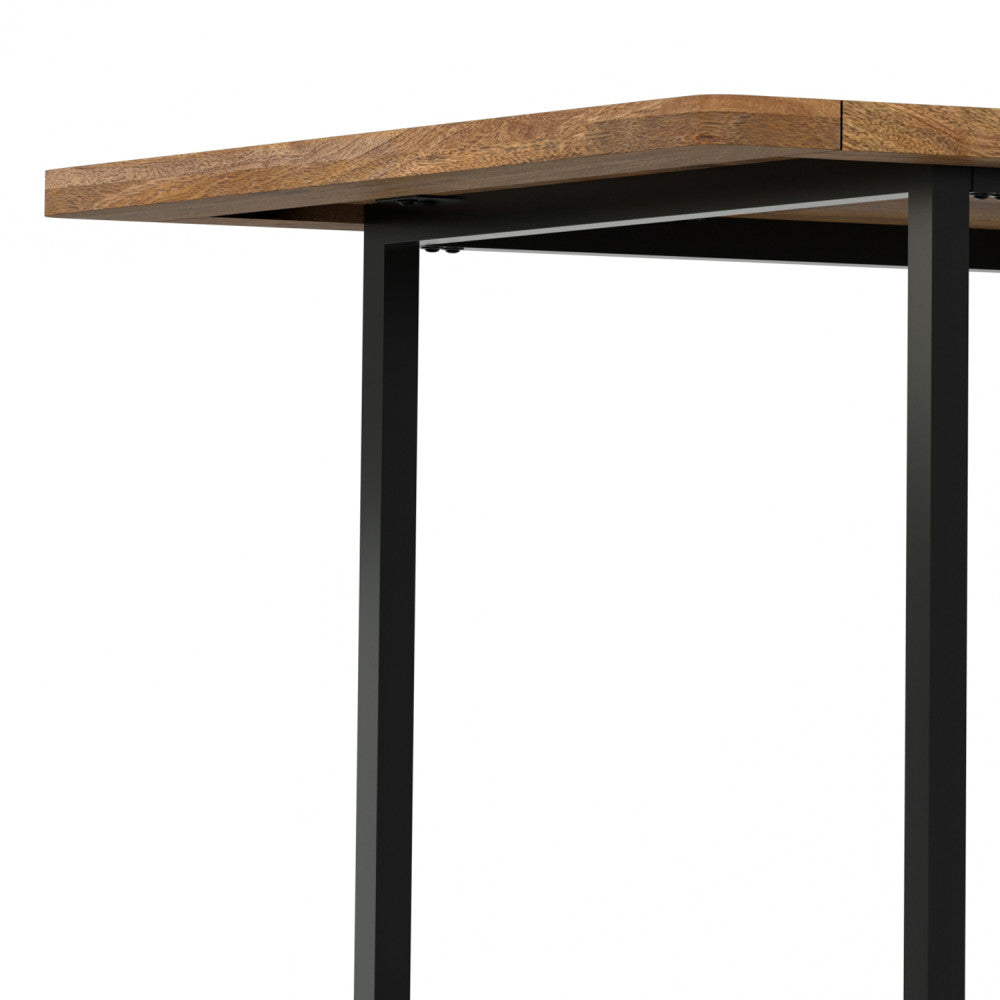 - Materials: Solid mango wood tabletop sustainably sourced and finished in Burnt Wax; powder-coated iron base in Black for long-lasting stability.