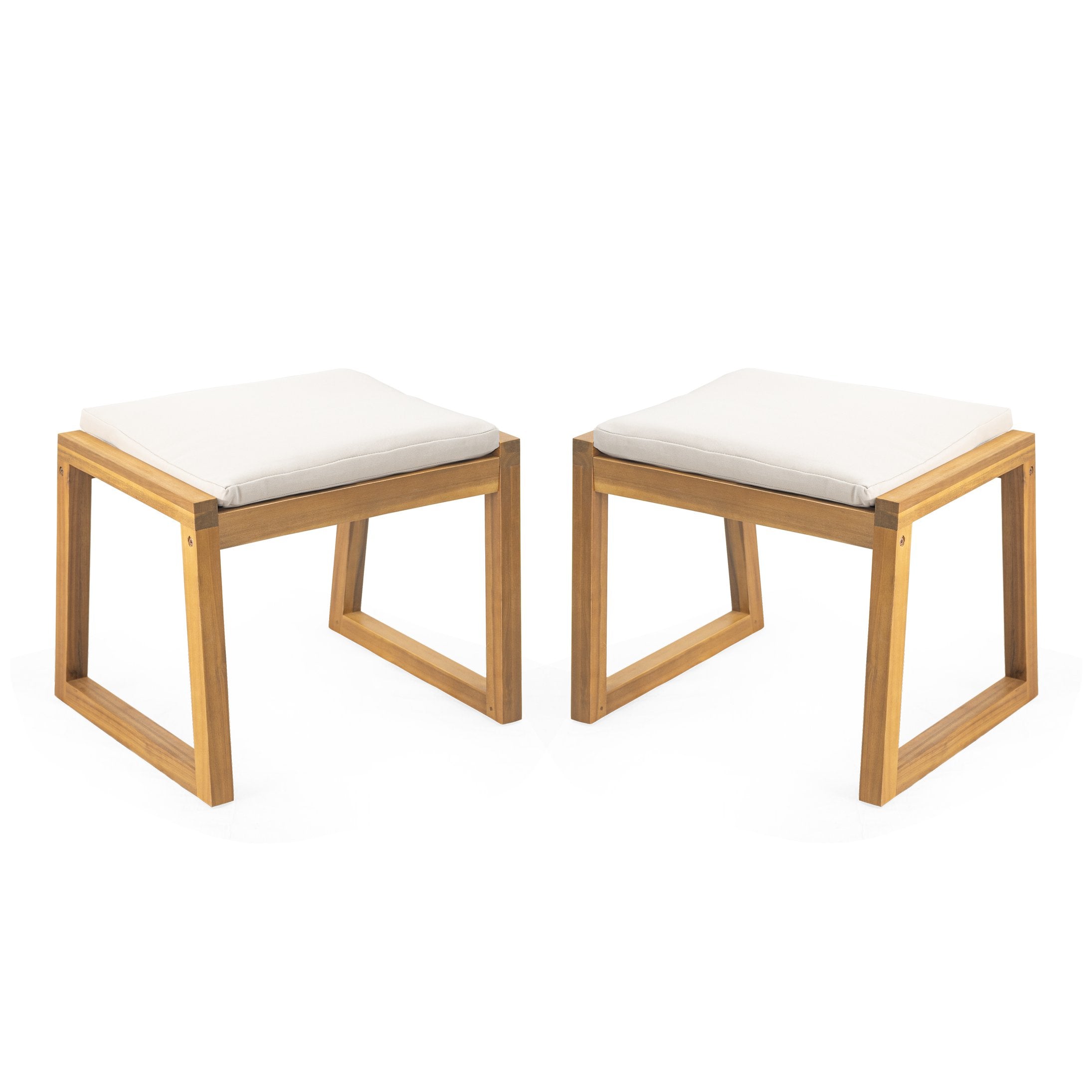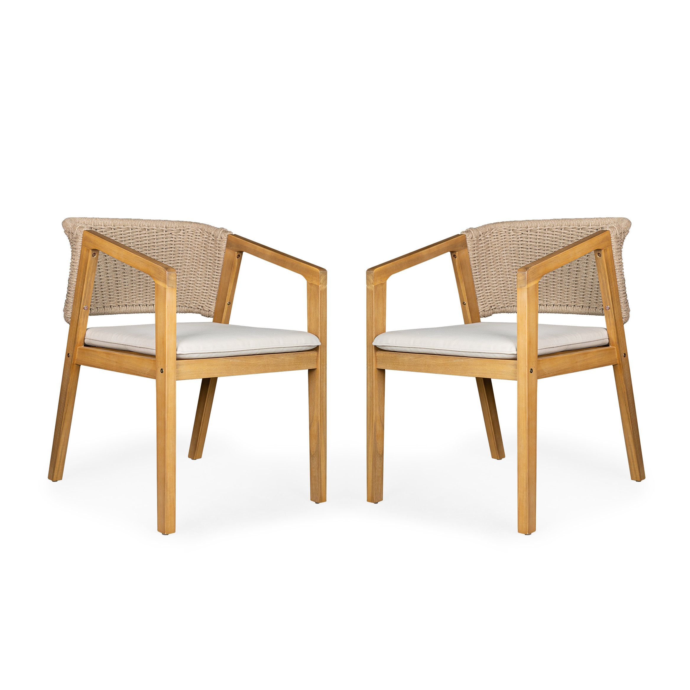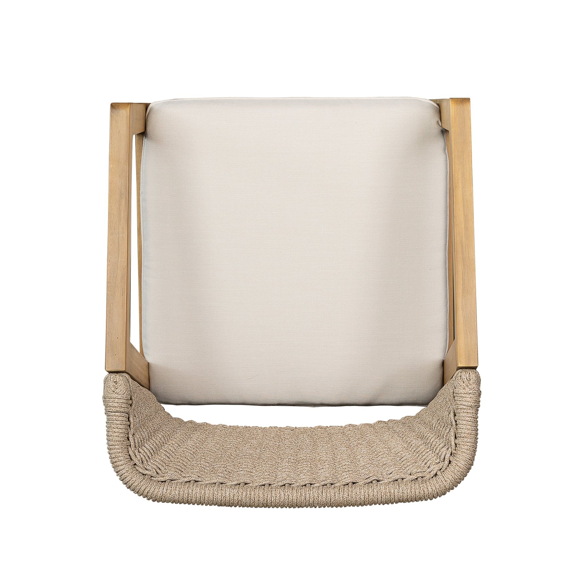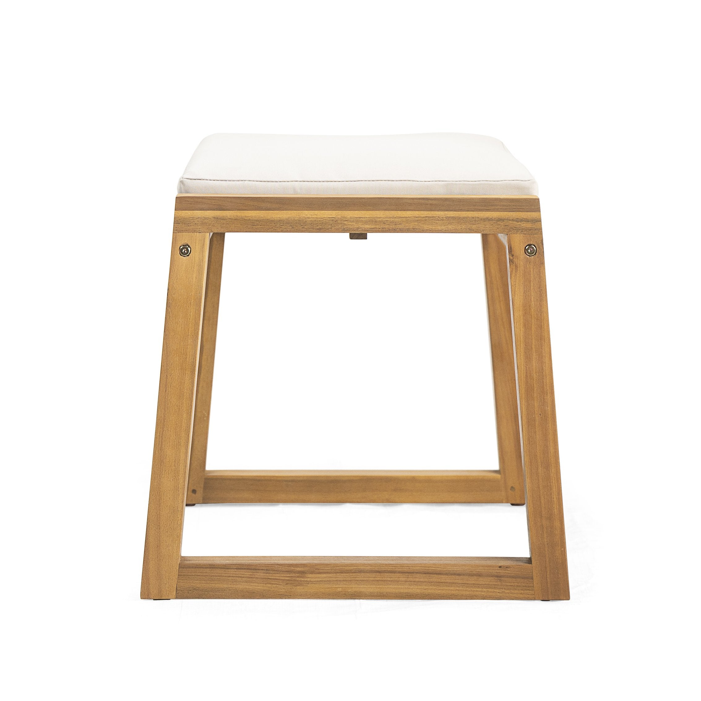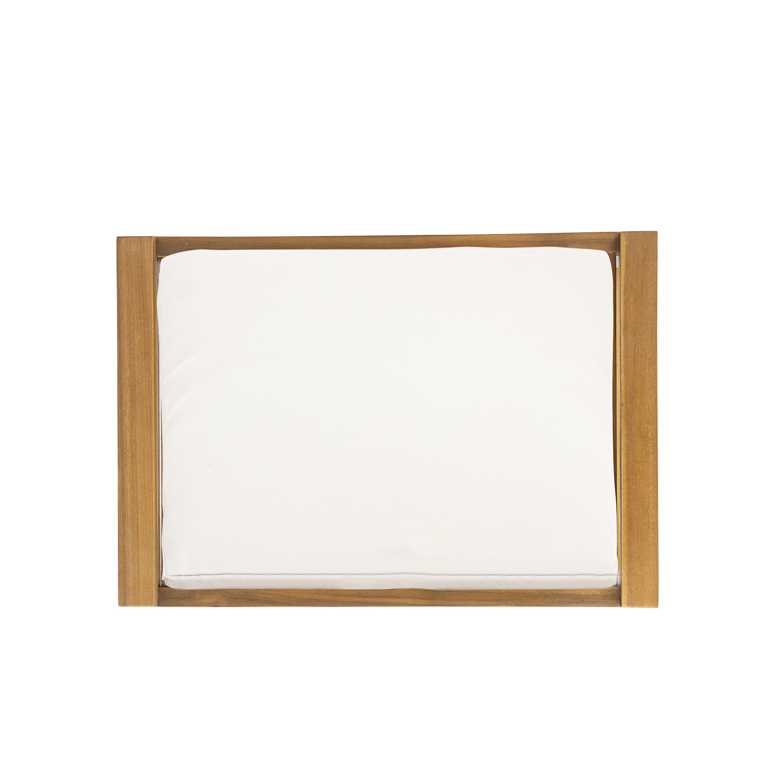 - Materials: Solid acacia wood construction for the frame and table surface; water-resistant fabric cushions for all seating.