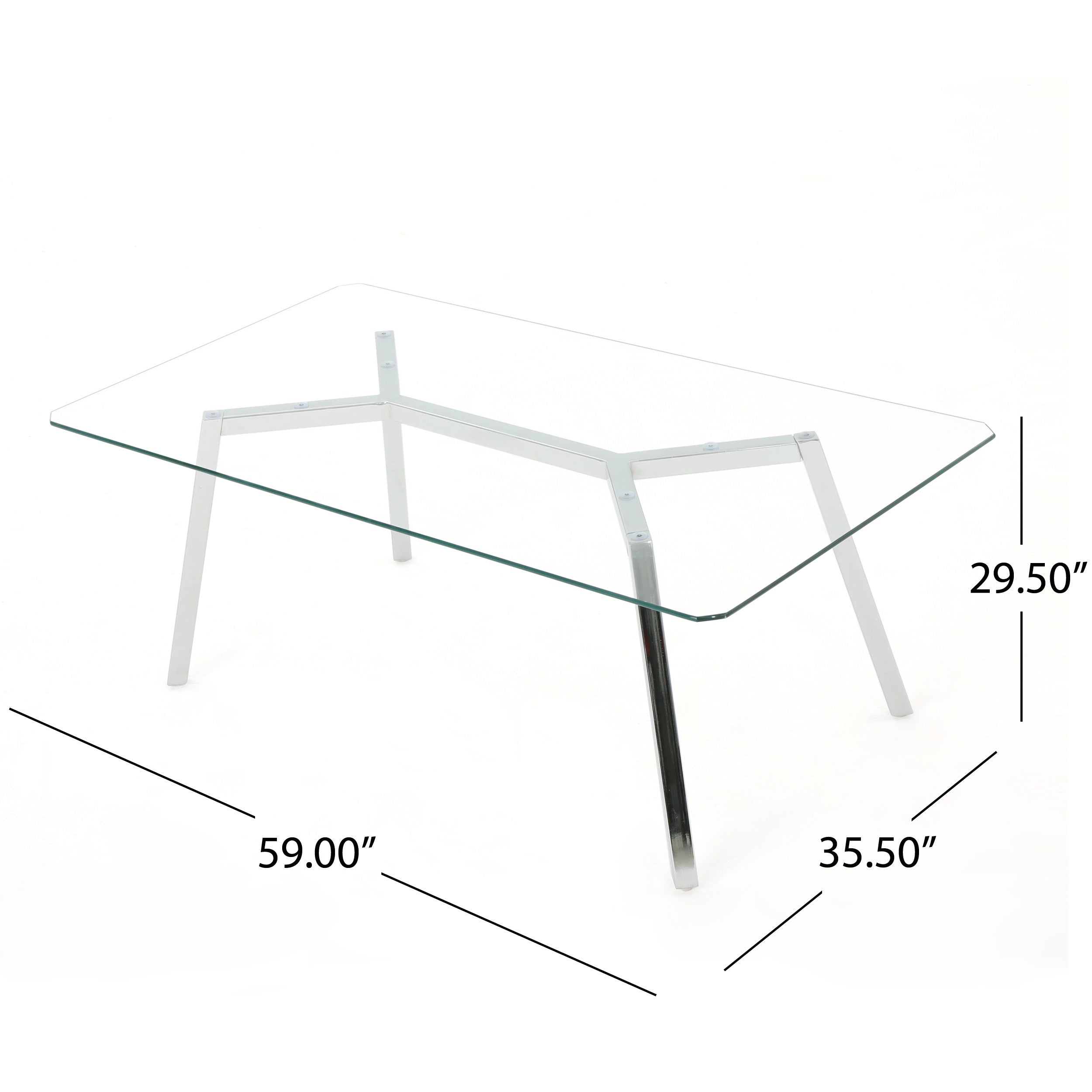 Elevate your dining area with a refined, modern-glam table that blends a clear tempered glass top and a chrome-finished iron frame for lasting style and durability. Designed to be both a functional centerpiece and a statement of contemporary elegance, this table accommodates everyday meals and special occasions with understated sophistication.