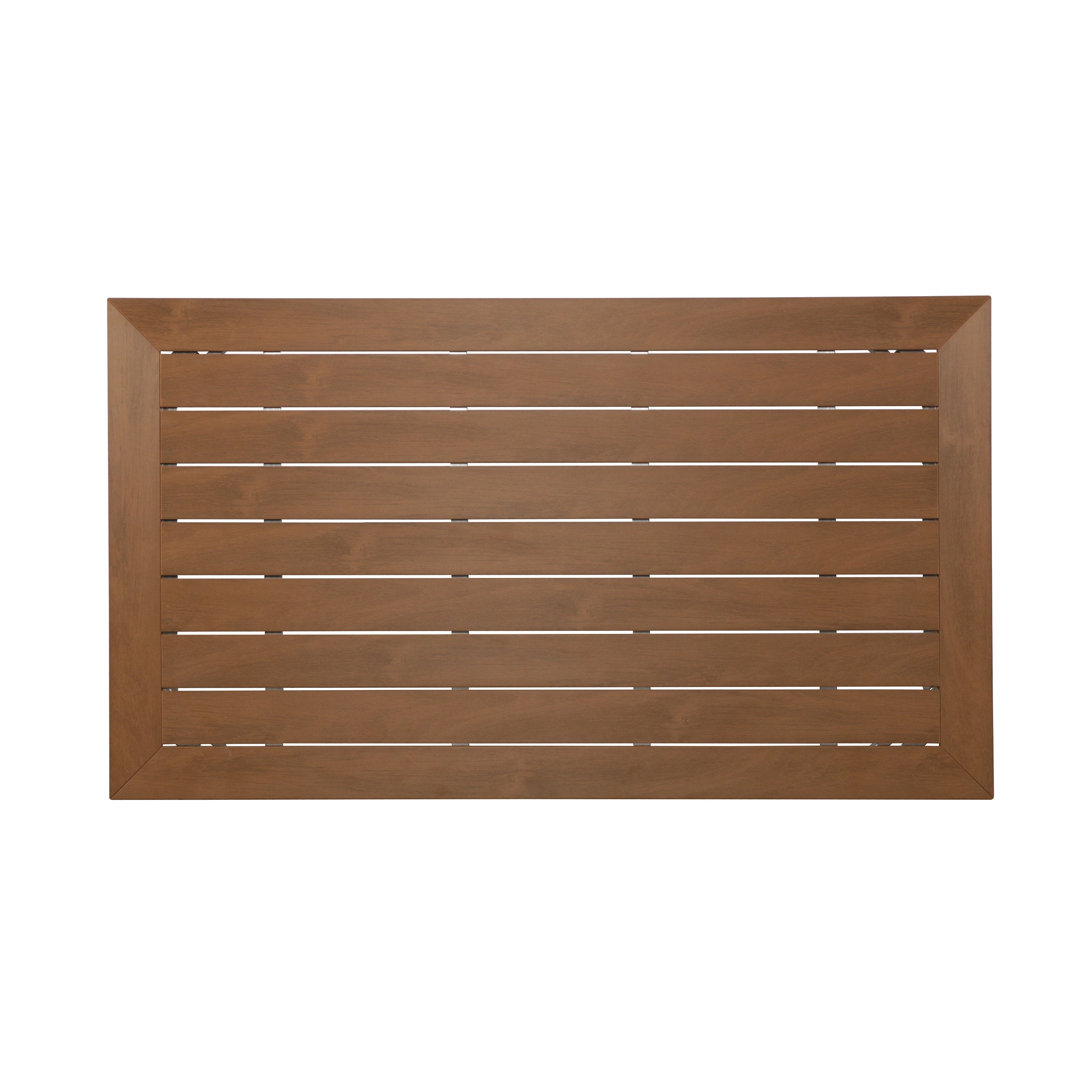 Invite modern outdoor dining to your patio with this stylish eucalyptus-look table, designed to blend the warmth of wood with the durability of rust-proof aluminum. Its clean lines and versatile silver frame make it an ideal centerpiece for casual family meals or entertaining friends, comfortably seating up to six.