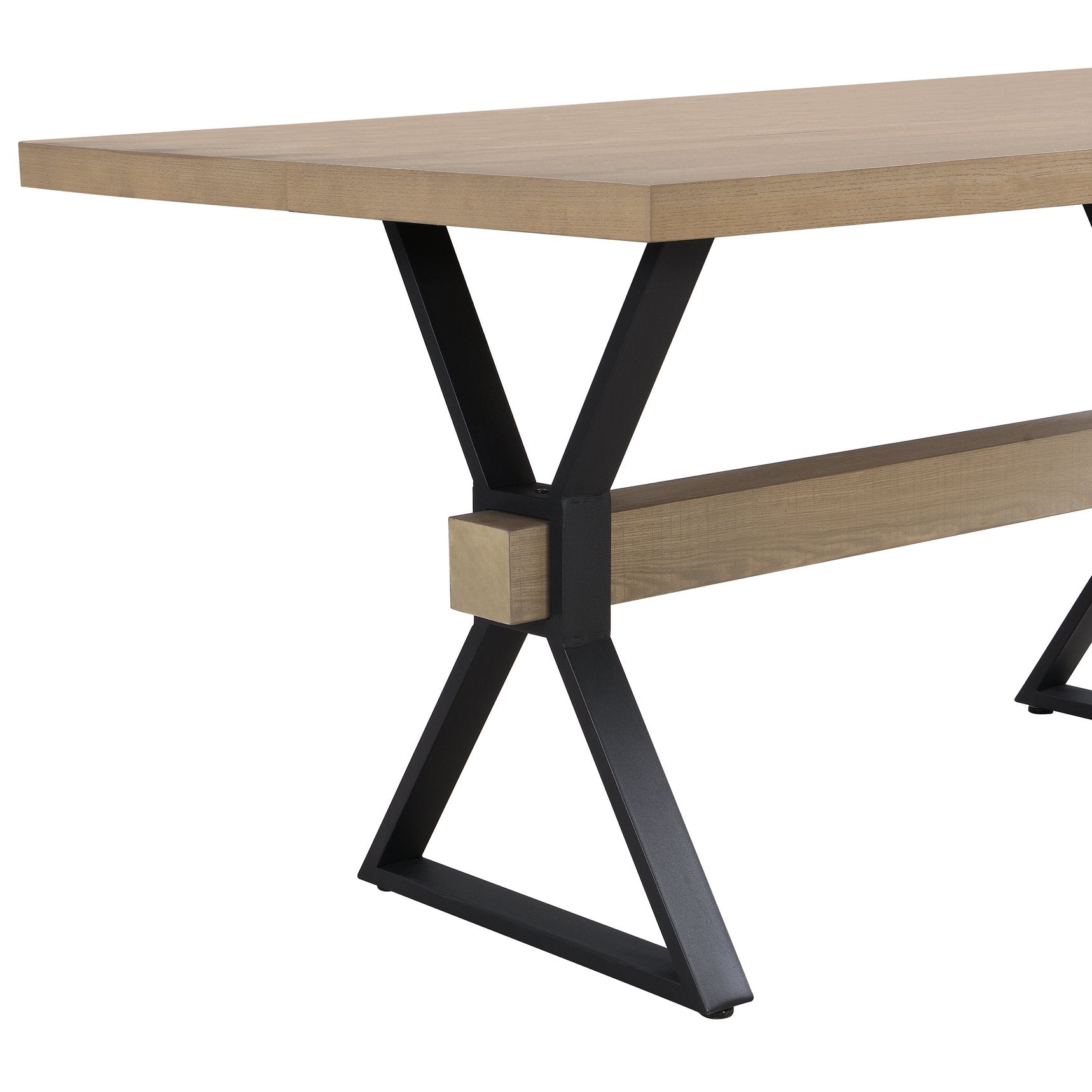 Elevate your dining space with a modern farmhouse table that balances rustic warmth and industrial strength. The Light Ash finish, X-shaped metal legs, and thick wood-effect tabletop create a striking focal point that’s equally suited for casual family meals or stylish dinner parties. Thoughtful details like moulded foot accents and visible wood knots add character while the sturdy mixed-material frame ensures long-lasting stability.