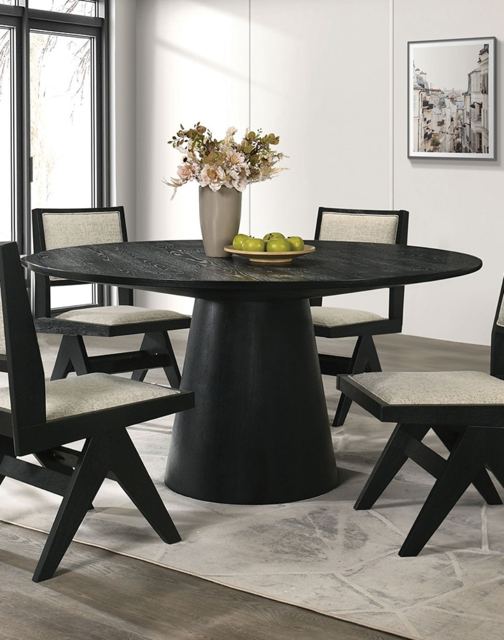 - Base: Dual pedestal trestle base provides excellent stability and legroom for diners