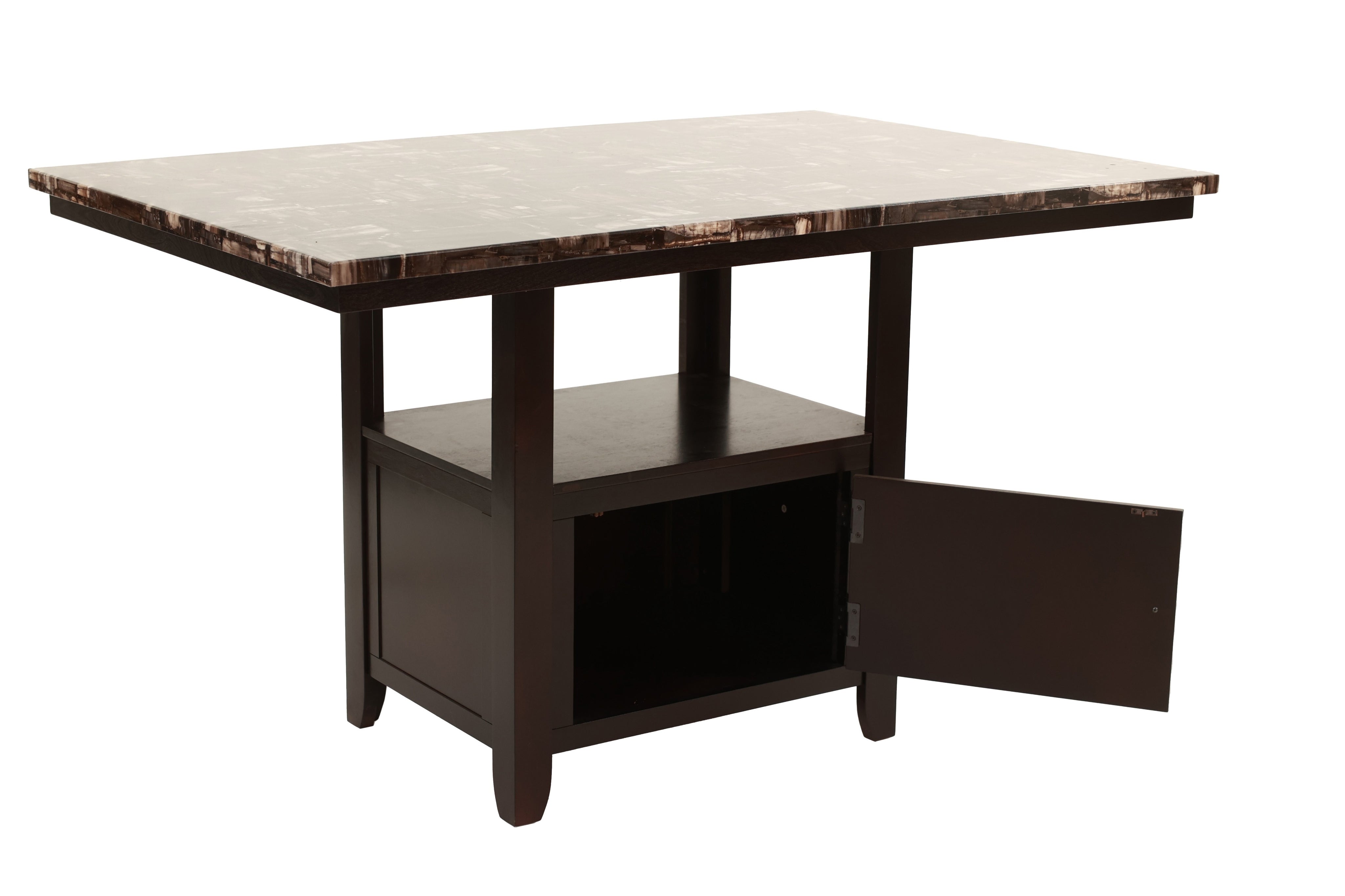 Enjoy modern casual dining with this elegant rectangular dining table that blends a faux marble top with a warm espresso trim and a practical storage base. Crafted from birch veneer and MDF, it pairs clean Parson-inspired lines with durable, easy-care surfaces—perfect for everyday meals or entertaining up to six guests. The single-piece listing includes the table only; chairs and bench sold separately.