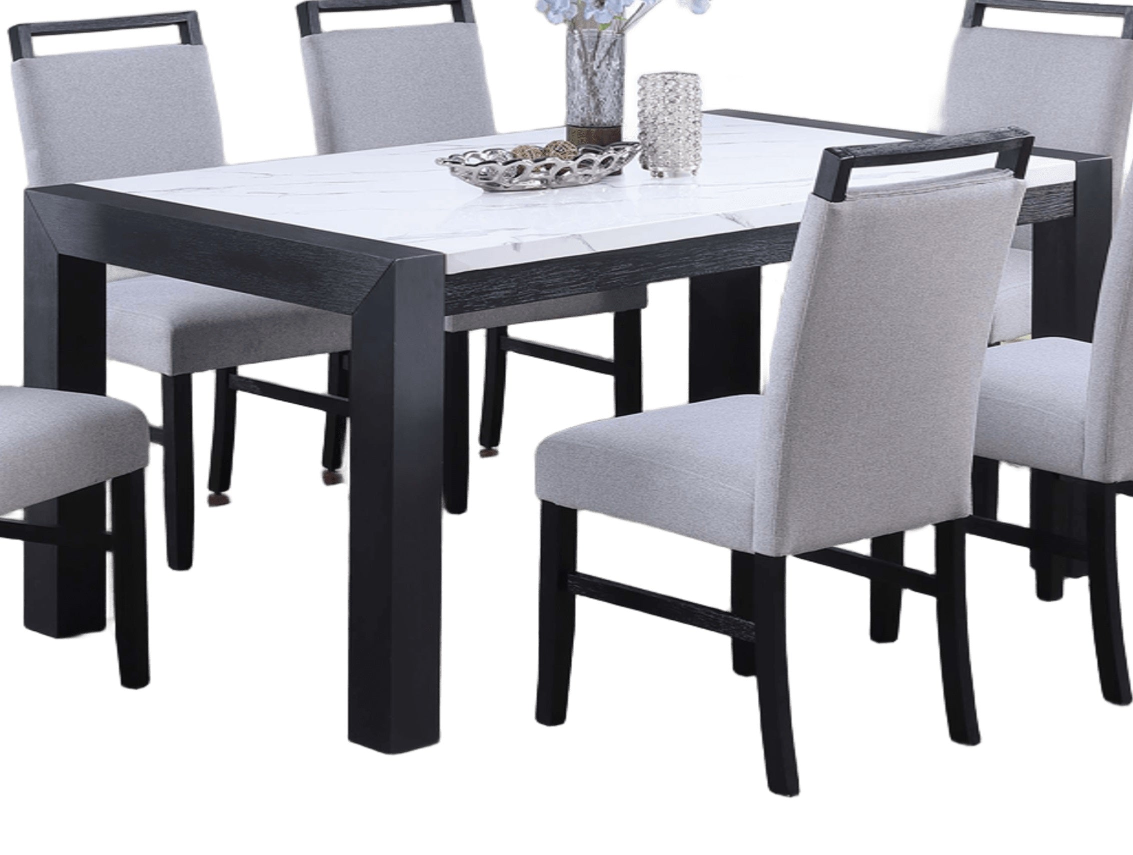 Elevate your dining area with a refined blend of modern design and classic elegance. This two-tone dining table pairs a lustrous white faux marble top with a sturdy charcoal wooden base to create a sophisticated focal point that suits contemporary, transitional, and urban interiors. Its generous rectangular surface is ideal for family meals, entertaining guests, or displaying centerpieces, while the durable construction ensures lasting everyday use.