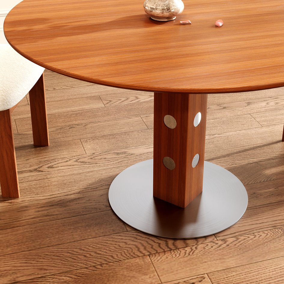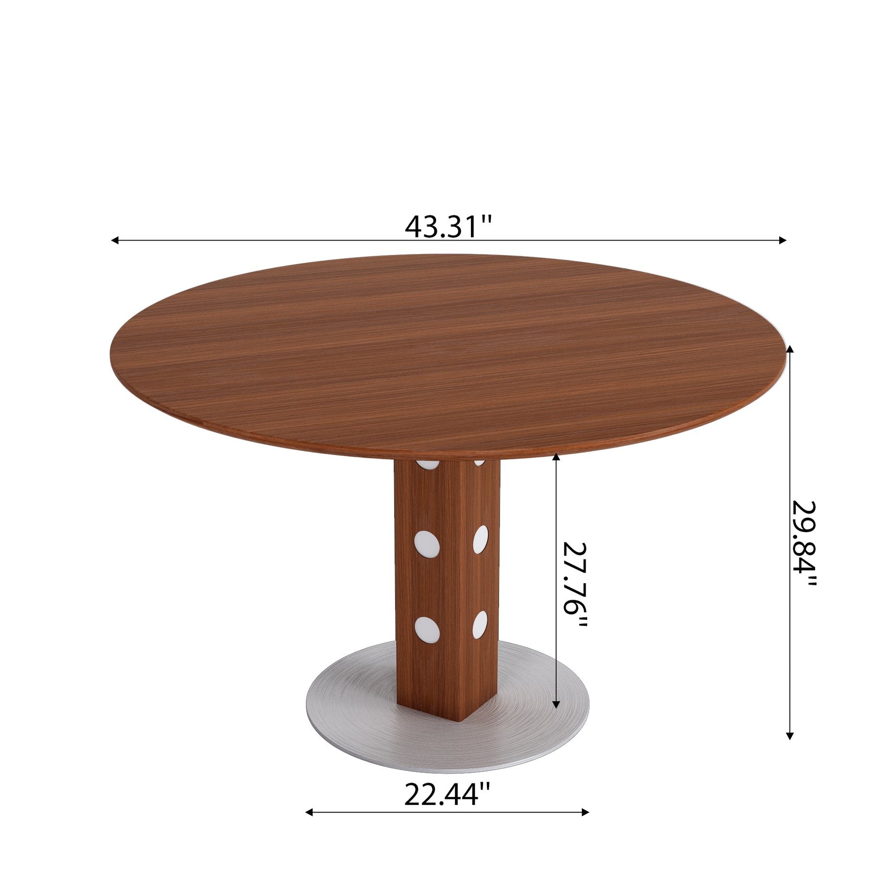 Introduce rustic warmth and modern stability to your kitchen or breakfast nook with this farmhouse-style round dining table. Crafted from solid wood with a walnut finish and supported by a heavy-duty metal pedestal, it balances cozy, family-friendly aesthetics with durable construction—ideal for small homes, apartments, or intimate dining spaces for 2–4 people.