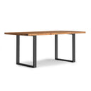 Bring rustic warmth and modern industrial design to your dining space with this handcrafted Fieldcrest dining table. Built from sustainably sourced solid acacia and finished with protective lacquer, the table showcases natural live edges and rich wood grain while providing a durable, functional surface for everyday meals or multiuse tasks.