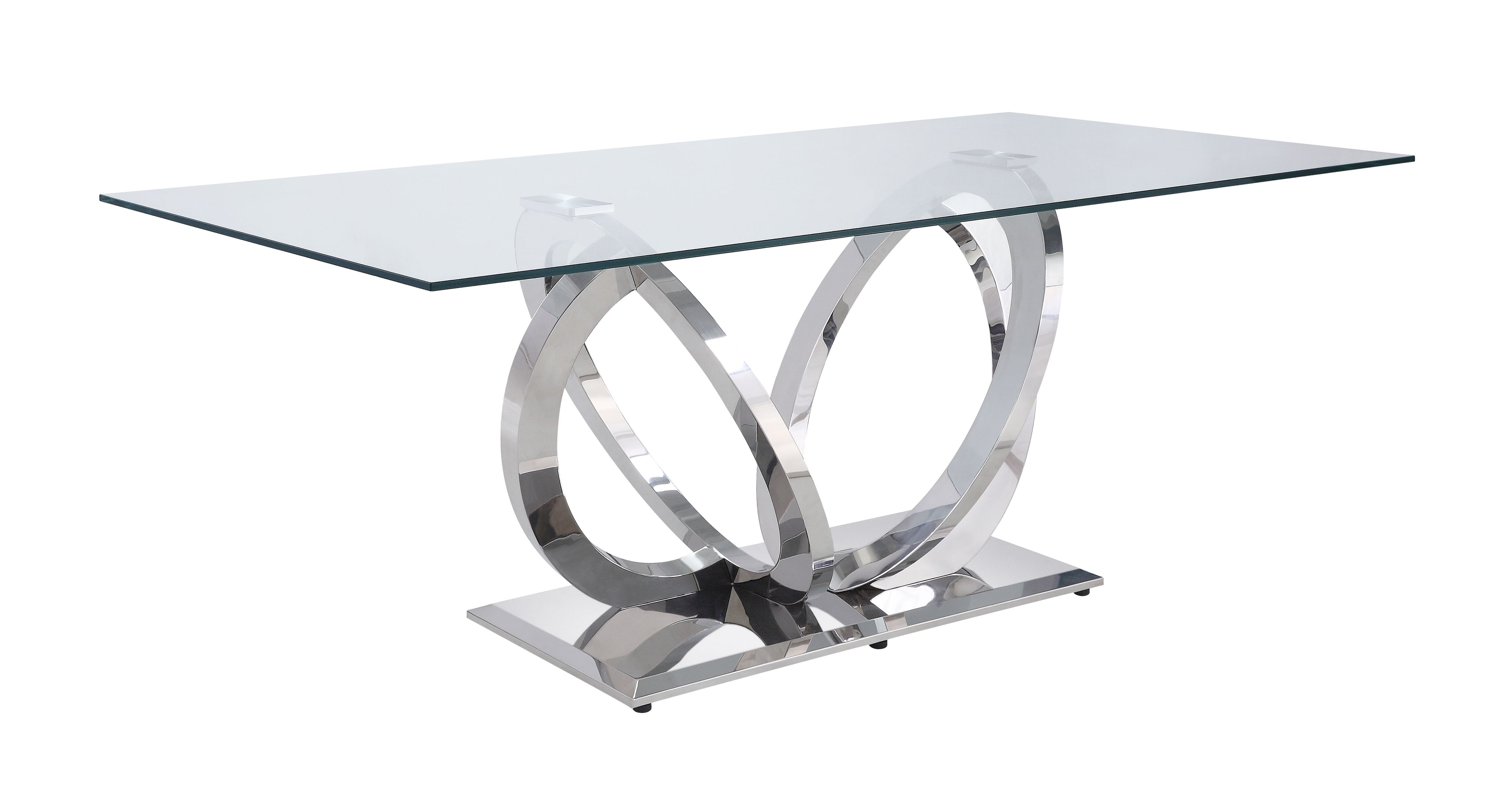 Elevate your dining area with a refined blend of modern minimalism and glamorous shine. This Finley dining table pairs a clear tempered glass top with a mirrored silver finish metal base to create a light, open aesthetic that functions as both an everyday surface and a striking focal point for entertaining.