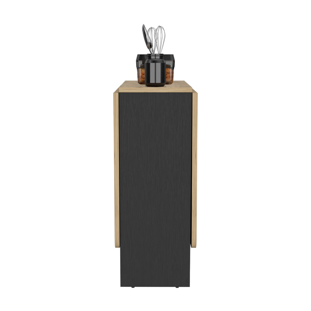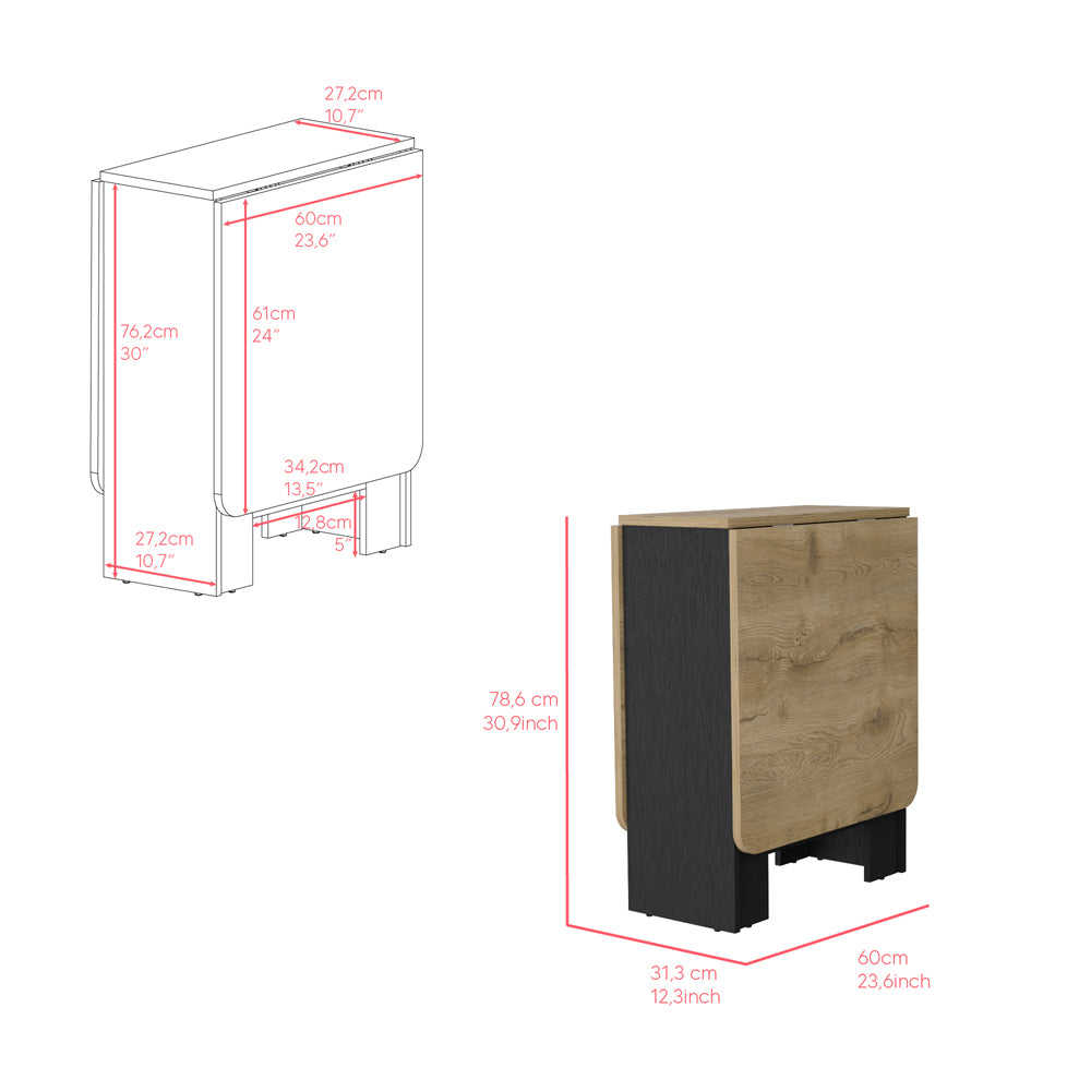 This versatile folding dining table blends modern style with practical functionality, perfect for small apartments, multipurpose living rooms, or occasional extra seating. Finished in a two-tone black and macadamia engineered wood, it converts quickly from a full dining surface to a compact folded profile for easy storage, while remaining sturdy enough for everyday use.