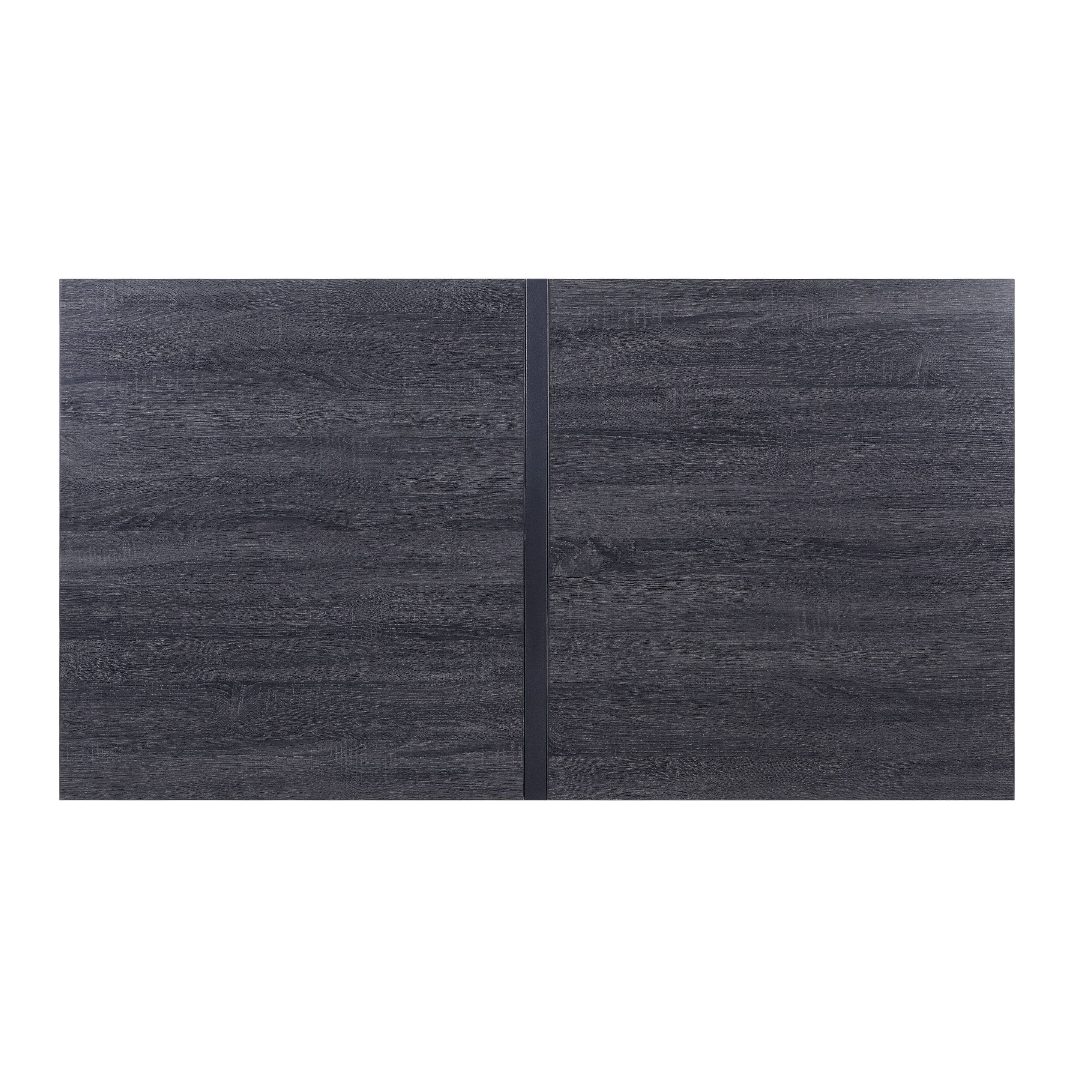 Elevate your dining space with a contemporary rectangular table that pairs a grey oak-look tabletop and black sled base for a refined, modern silhouette. Thoughtfully designed for everyday use and special gatherings, this piece blends aesthetic details — like a metal inset on the surface — with a robust support system to deliver both style and stability.