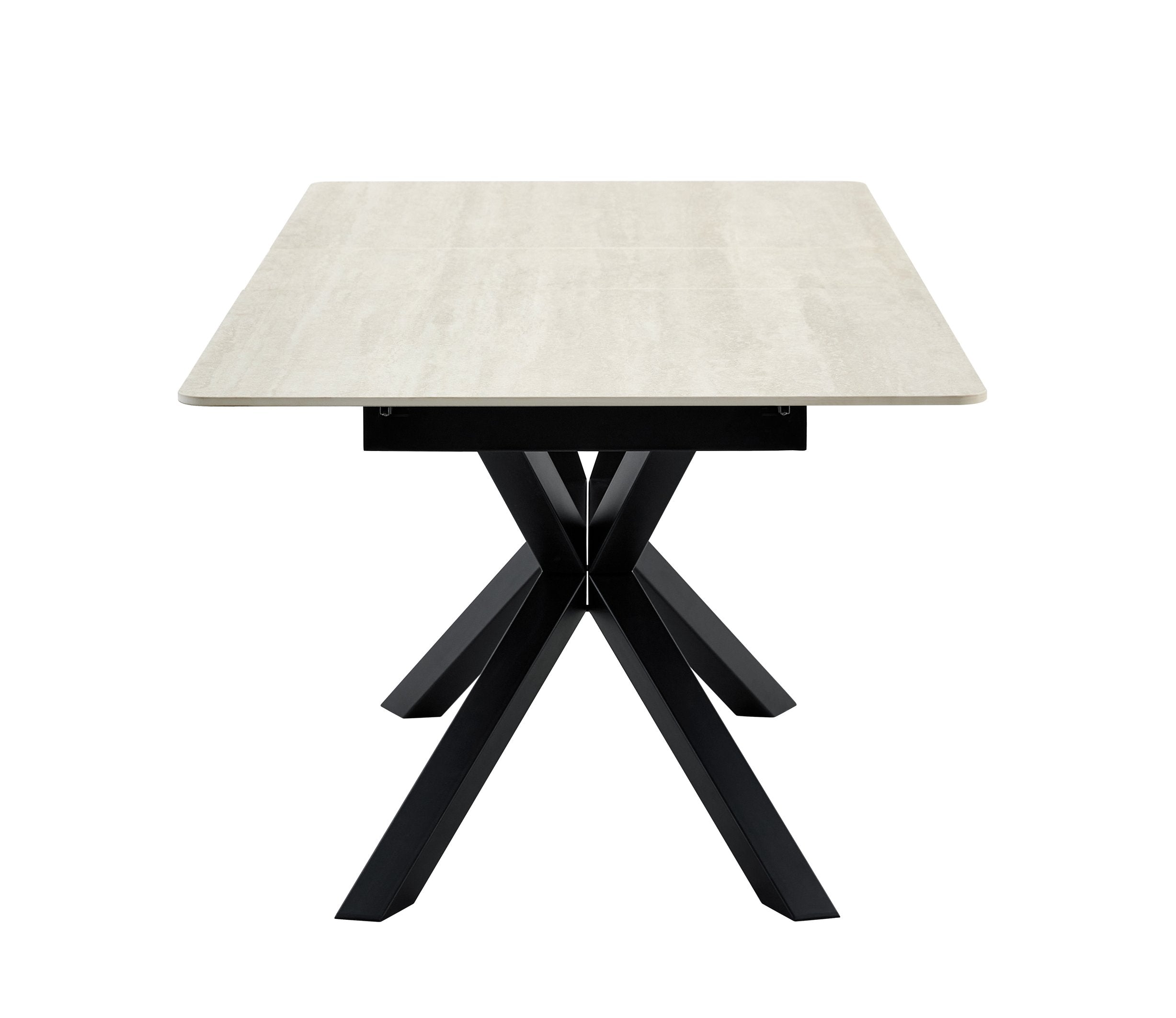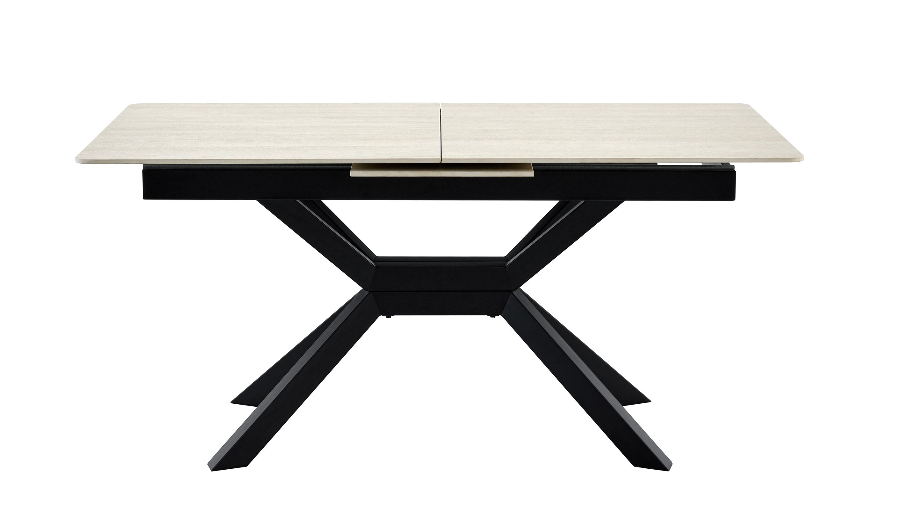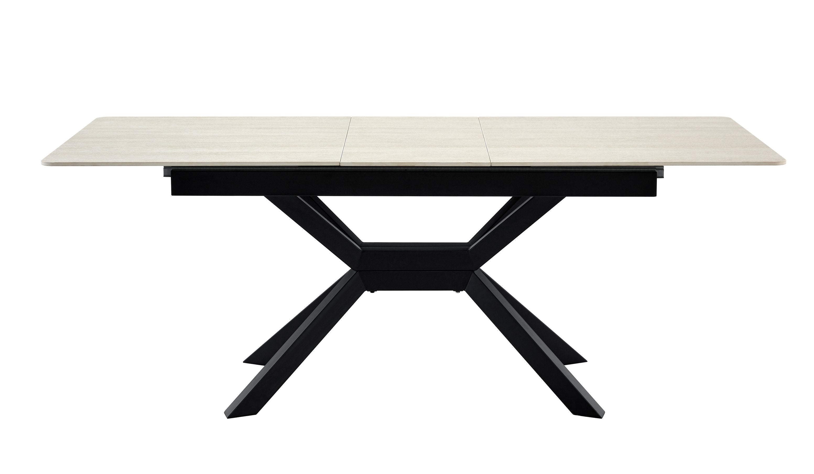 Bring contemporary elegance and practical versatility to your home or office with this modern extendable dining table. Crafted for everyday use and entertaining, it pairs a durable sintered stone tabletop with a geometric X-frame metal base for a clean, architectural look that fits dining rooms, kitchens, breakfast nooks, or meeting areas. The smooth, easy-care surface and reliable extendable mechanism make it ideal for compact living or expanding to accommodate guests.
