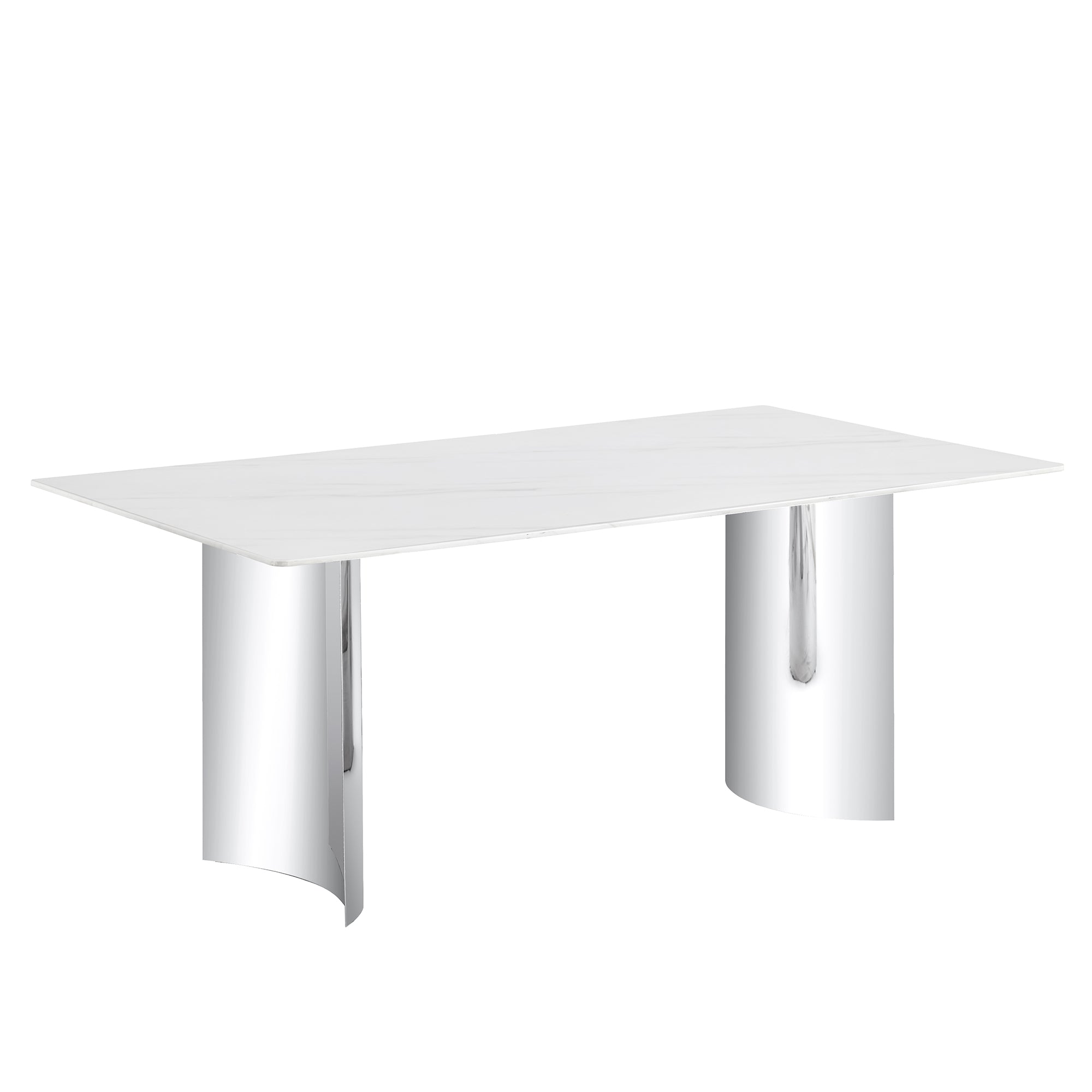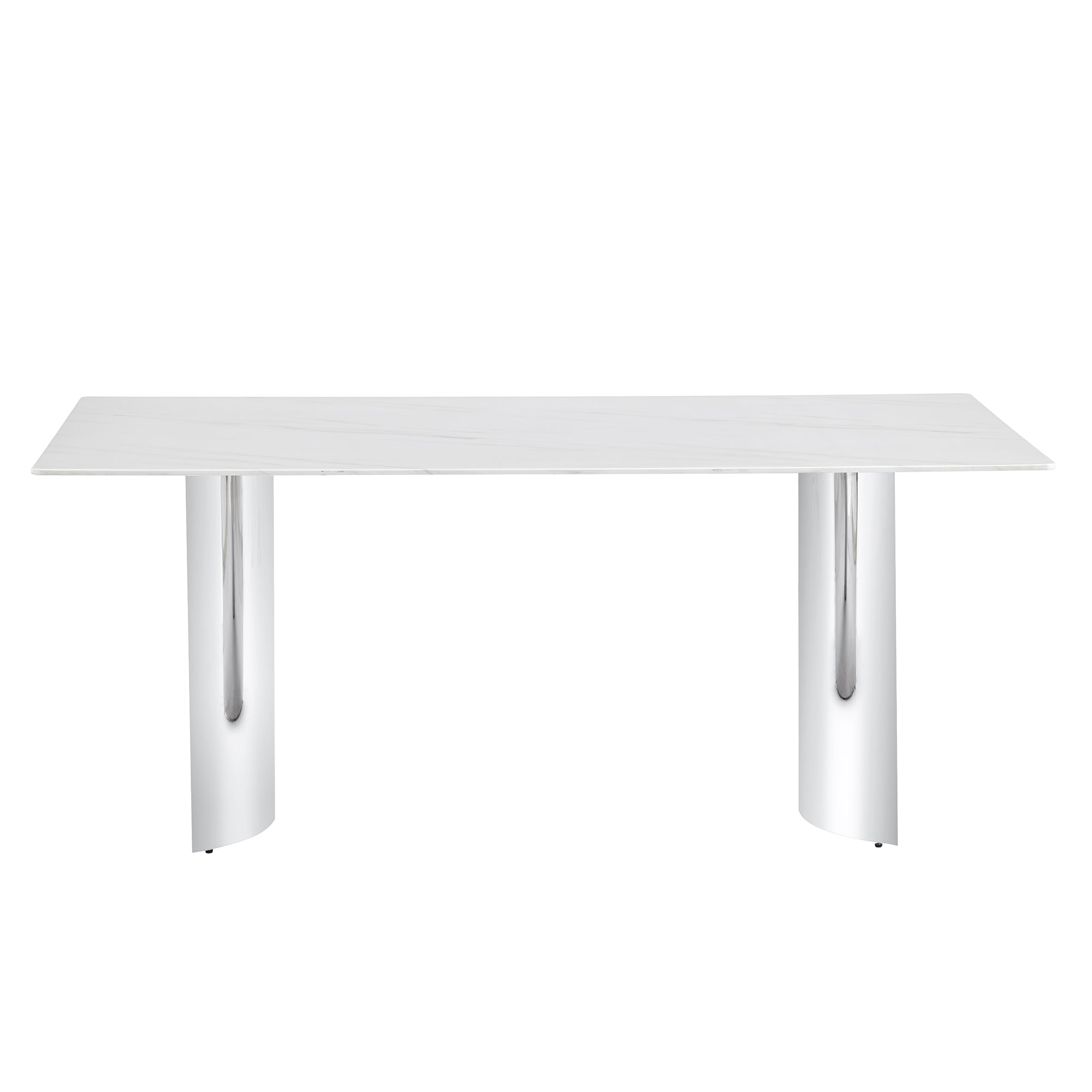 Elevate your dining or restaurant space with a modern minimalist table that combines the refined look of white marble with durable silver metal legs. Designed for both residential and commercial settings, this piece offers a striking focal point while delivering practical dining and display functionality. Its clean lines and neutral palette make it easy to coordinate with contemporary interiors, from family meals to catered events.