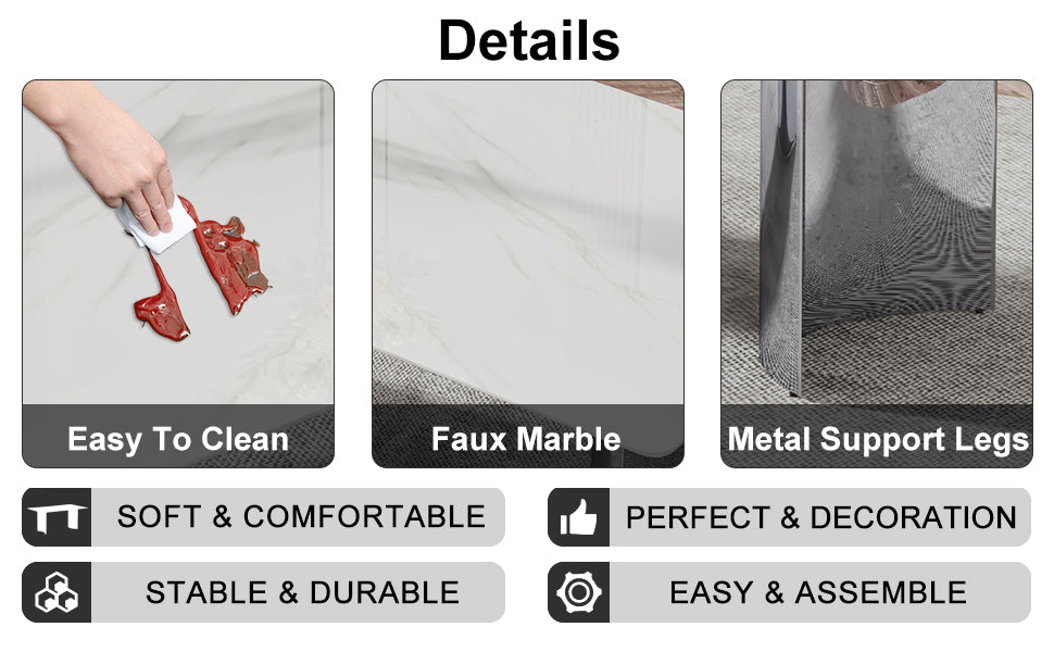 - Materials: High-quality imitation marble glass desktop for a luxe appearance and easy cleaning; sturdy silver metal legs for stable support