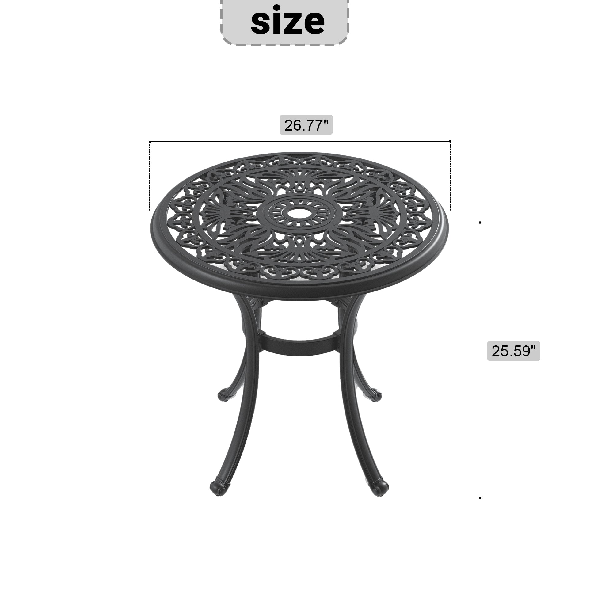 - Traditional casting process is used to produce tables with exquisite carved lines or various patterns, presenting an elegant and beautiful appearance. This design eliminates monotony and adds a touch of charm to your outdoor space, creating a delightful atmosphere for dining and relaxation.