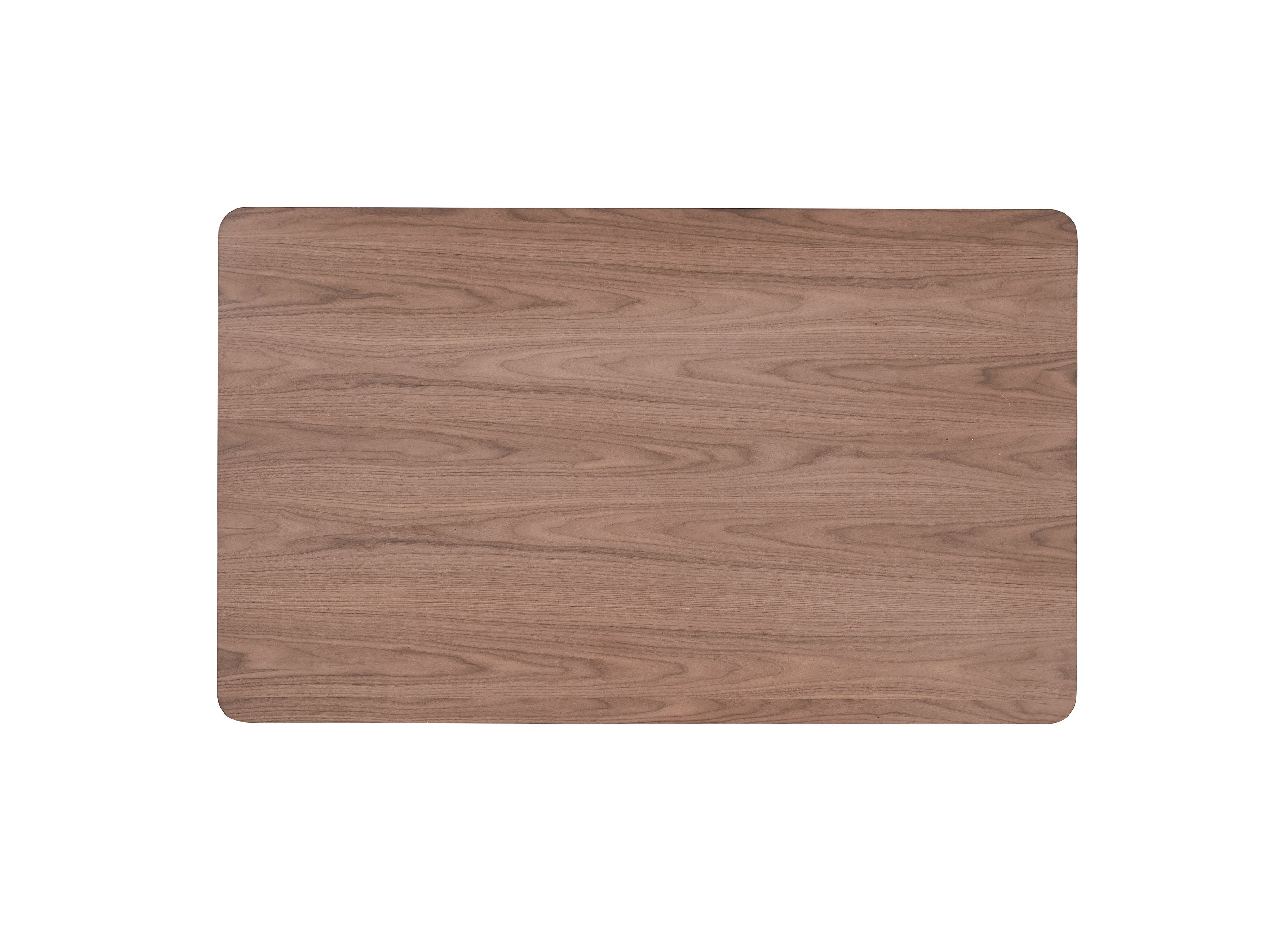 - Design: Rectangular fixed tabletop with wooden legs in walnut and black finish for contemporary styling