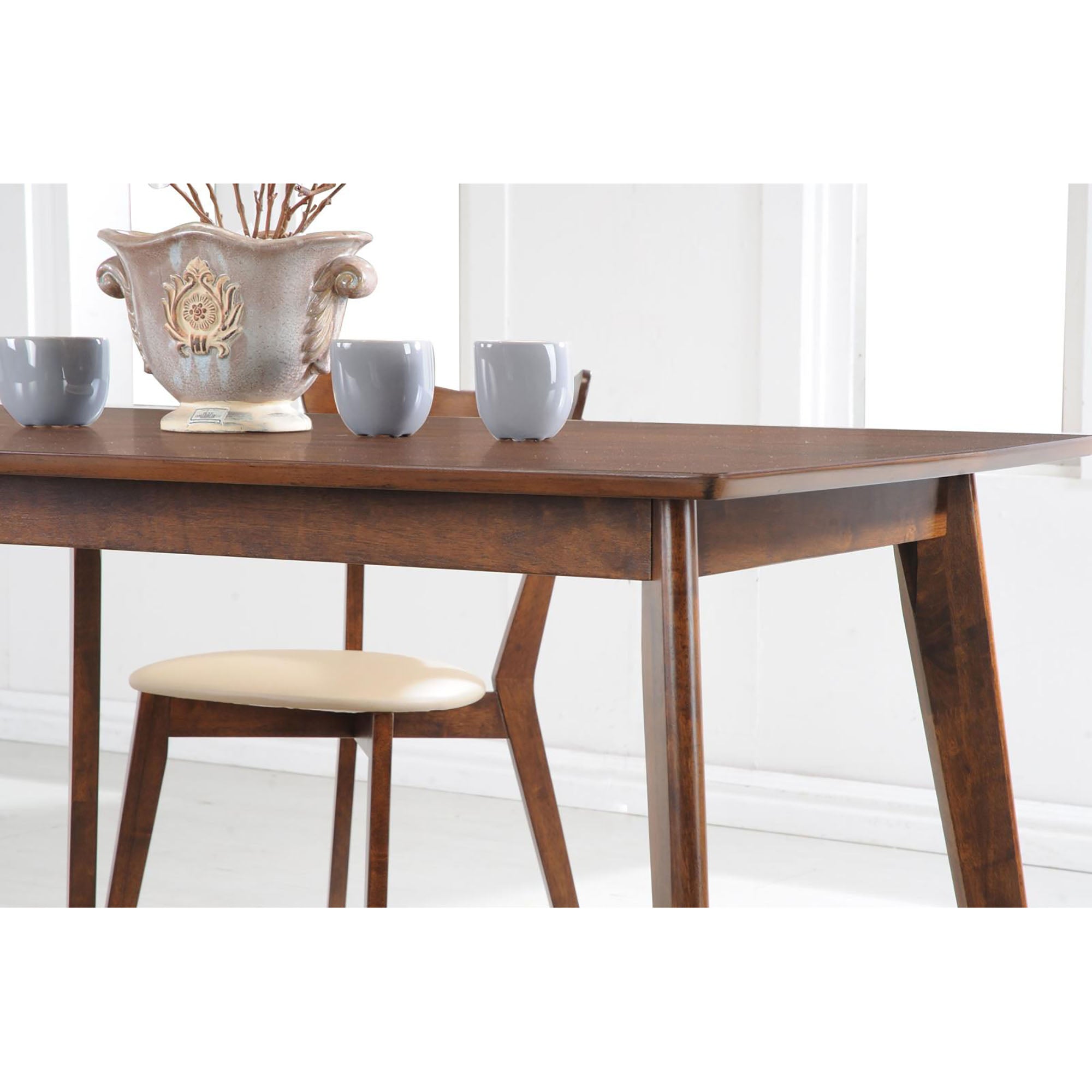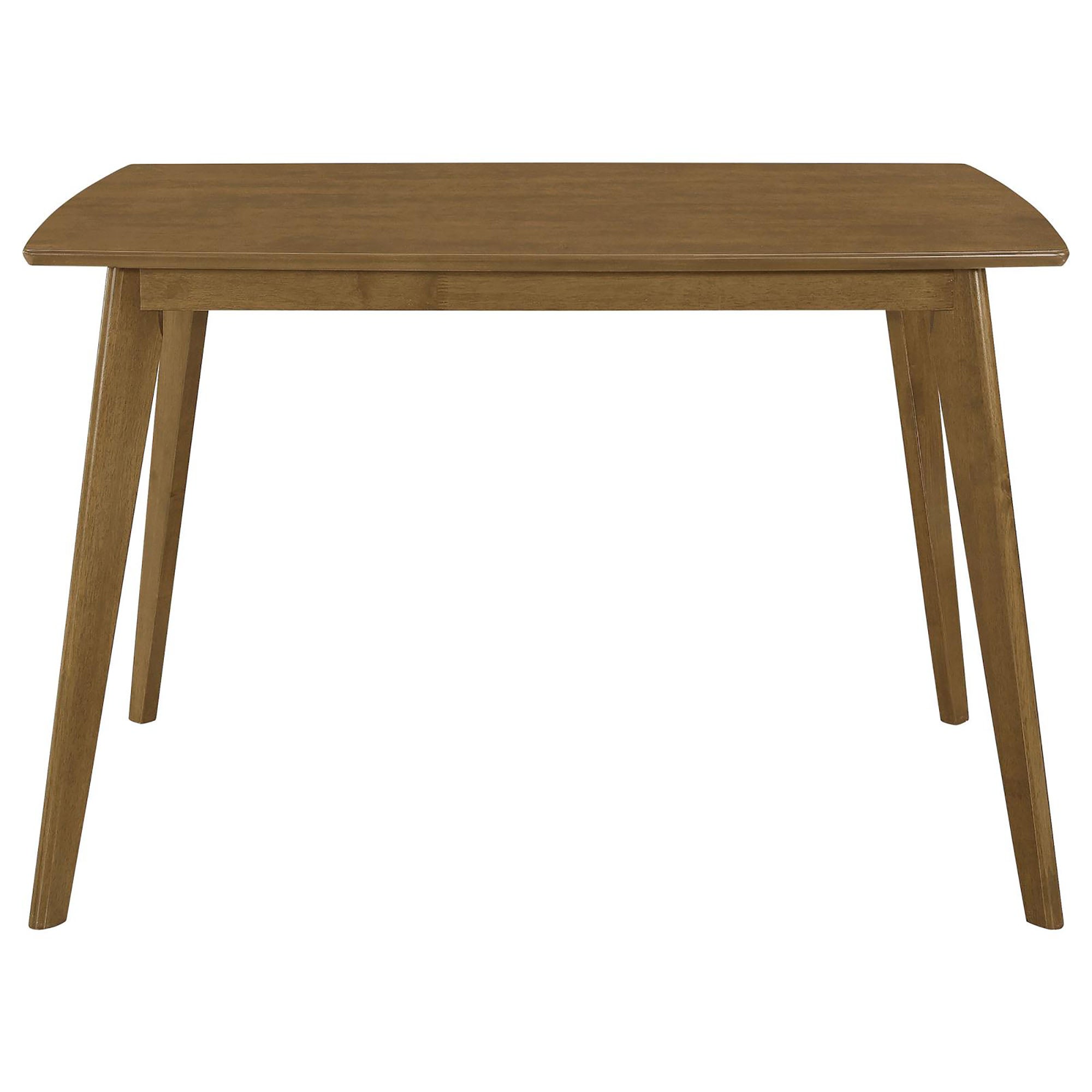 Bring mid-century charm to your dining space with this Retro Chestnut dining table from the Kersey collection. Clean rectangular lines, a warm chestnut finish, and subtly angled legs create a timeless silhouette that blends vintage character with modern versatility—perfect for everyday meals or intimate gatherings.