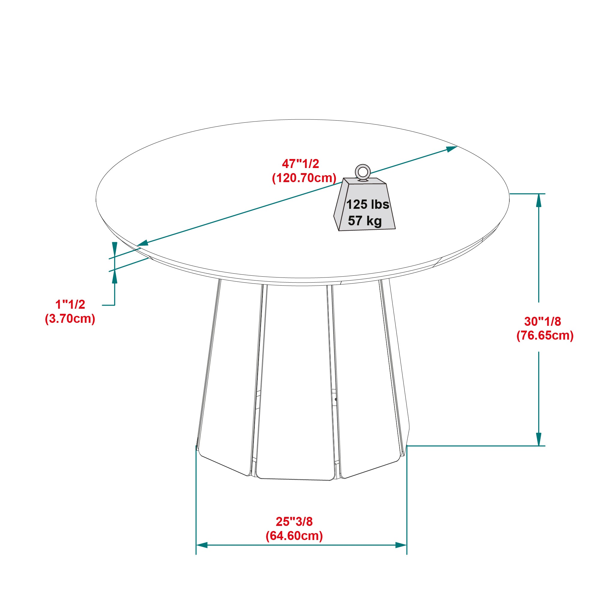 - Dimensions: Assembled dimensions: 30 ⅛” H x 47 ½” D (48" round tabletop)