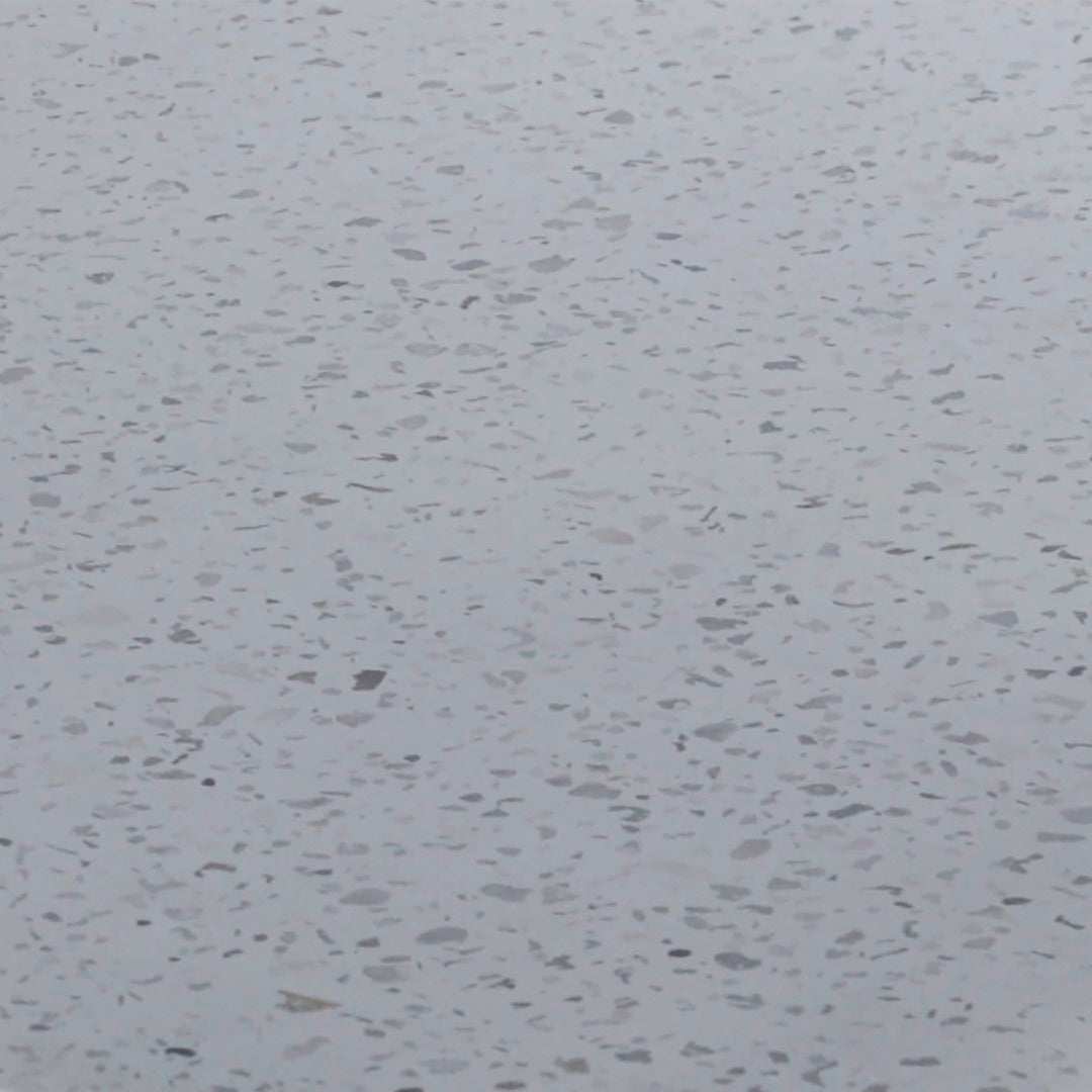 - Detail 1: TABLETOP MADE FROM POURED SPECKLED WHITE TERRAZO WITH A CLEAR SEAL