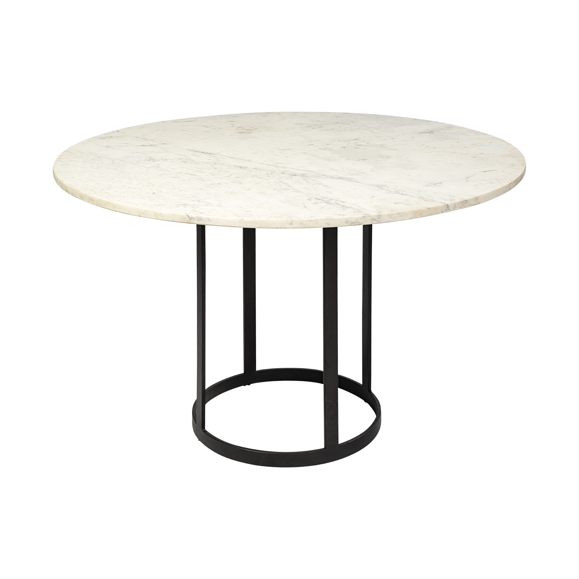 - White marble top with black metal base.