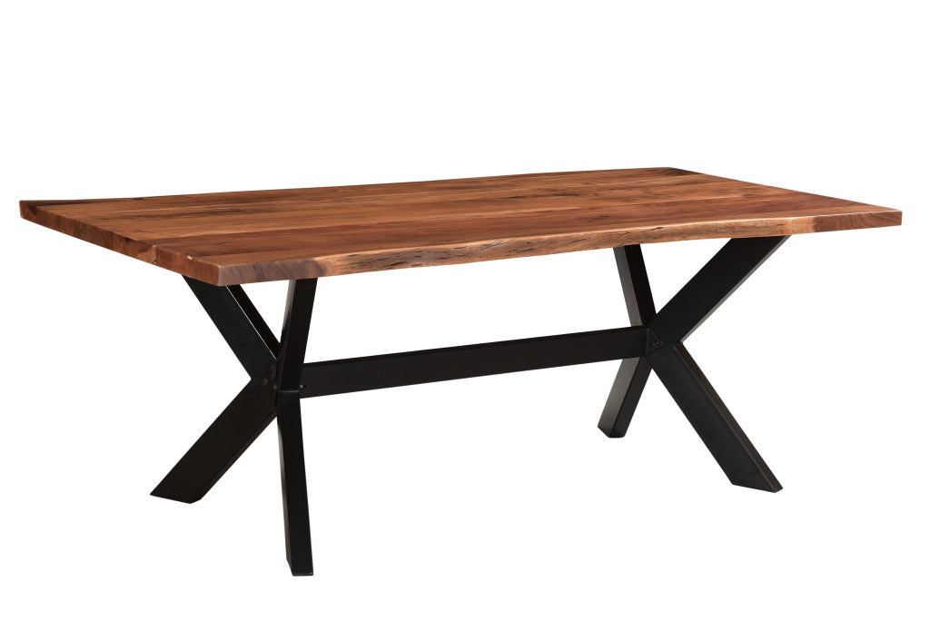 - Modern Rustic meets industrial with this spectacular solid wood top live edge table with X shape metal base.