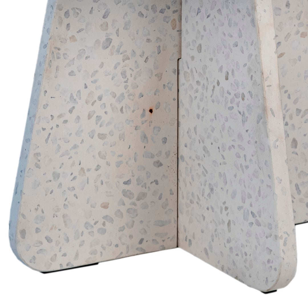 - Feature 2: SPECKLED SEALED WHITE TERRAZZO TABLE TOP AND BASE