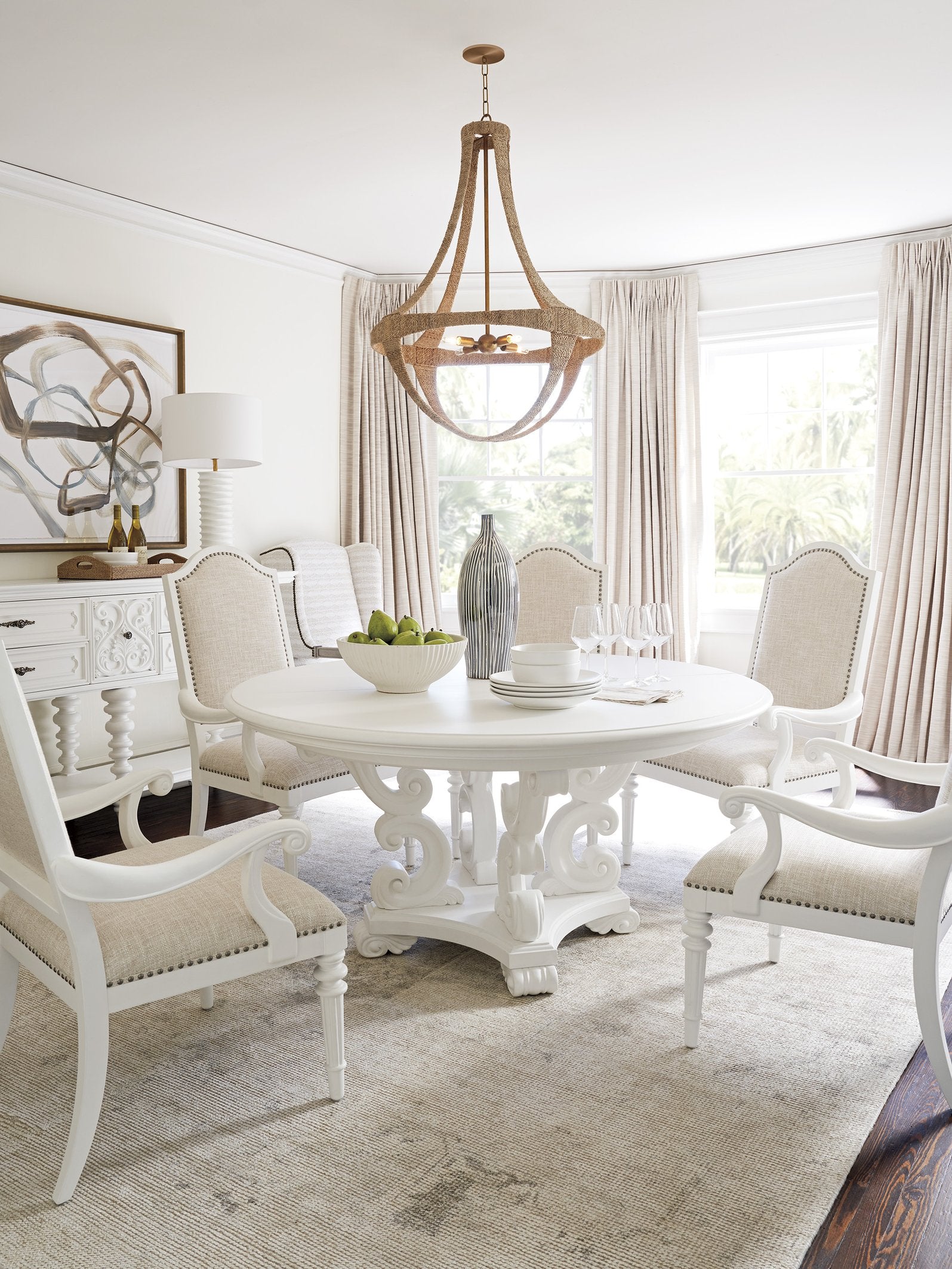 - Table components consist of a 46.5-inch diameter base and a 60-inch diameter top, each 4.5 inches thick.