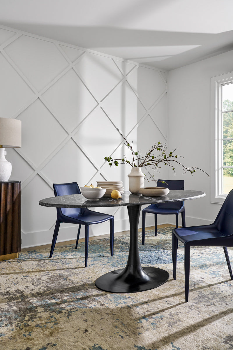 - Material: Anatalia ANAT-001 30"H x 55"W x 55"D Dining Table - Top: Acacia; Base: Iron