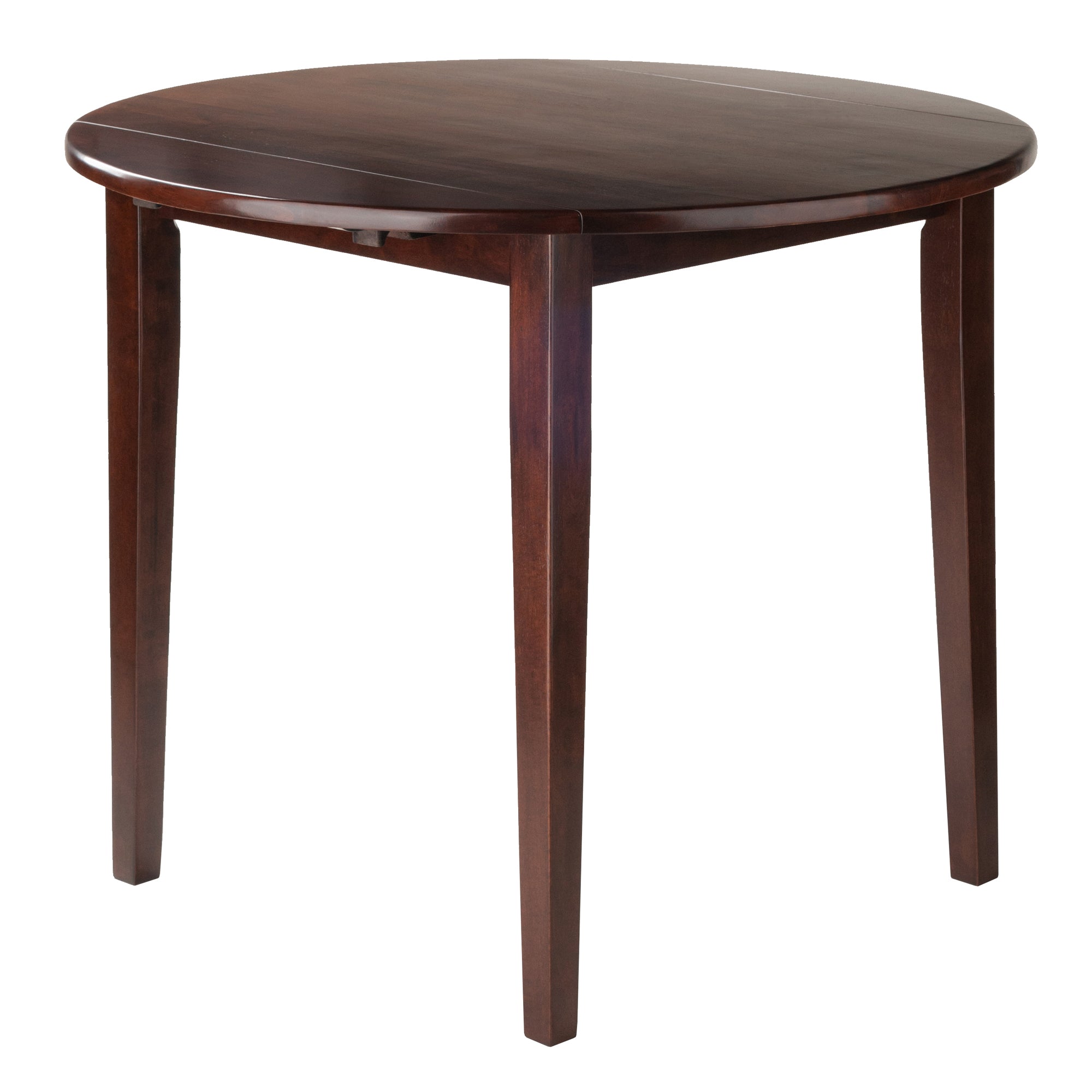 Simplicity and versatility define the Clayton Round Drop Leaf Table. With two drop leaves, the table seats four in the dining area or kitchen. It's also an ideal addition to the family room or for use as an extra workspace. Lower one or both leaves to create the size that's right for your space. Made of solid and composite wood in a Walnut finish.