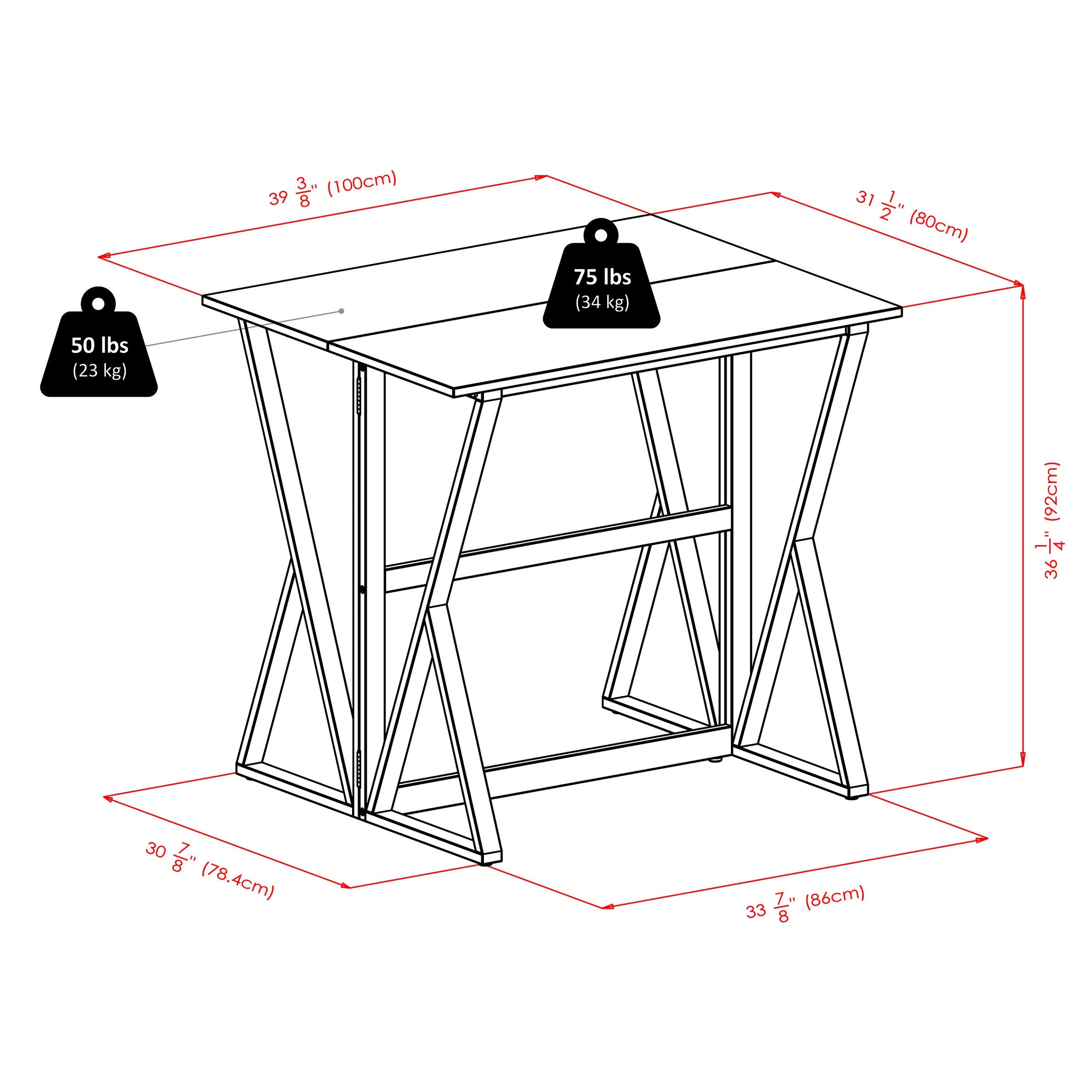 - Fully extended table size 39.37"W x 31.50"D x 36.22"H. Table closed 39.37"W x 16.59"D x 36.22"H.