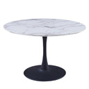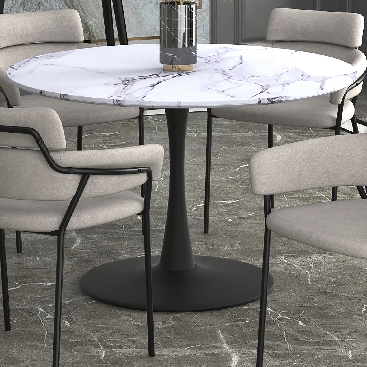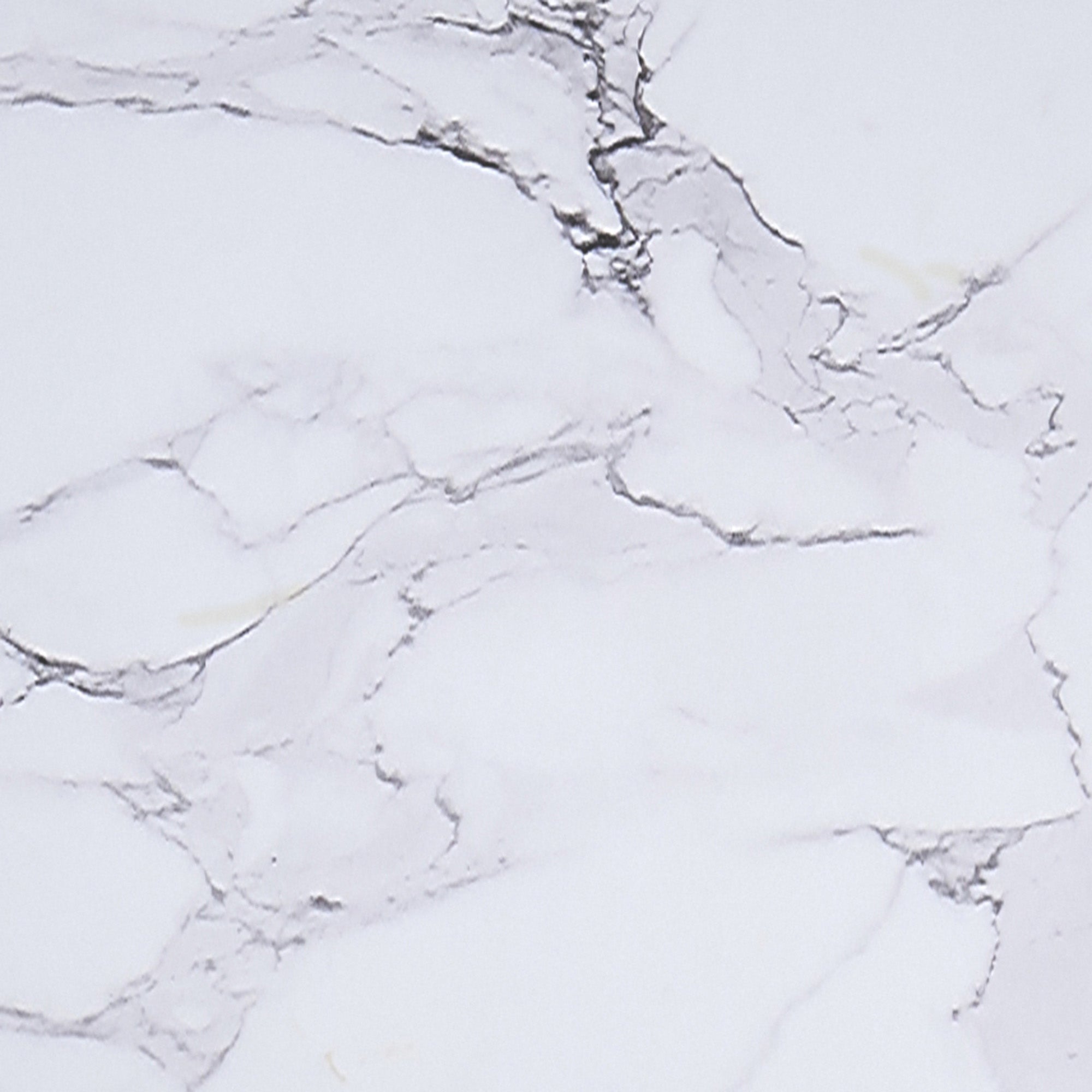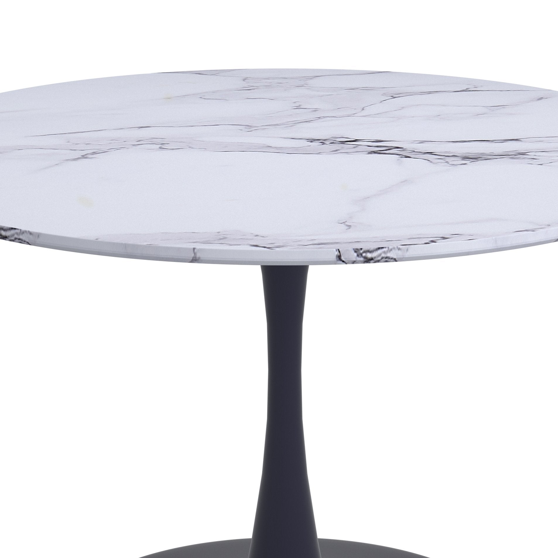 - Engineered wood table top with laminated veneer in a faux marble finish