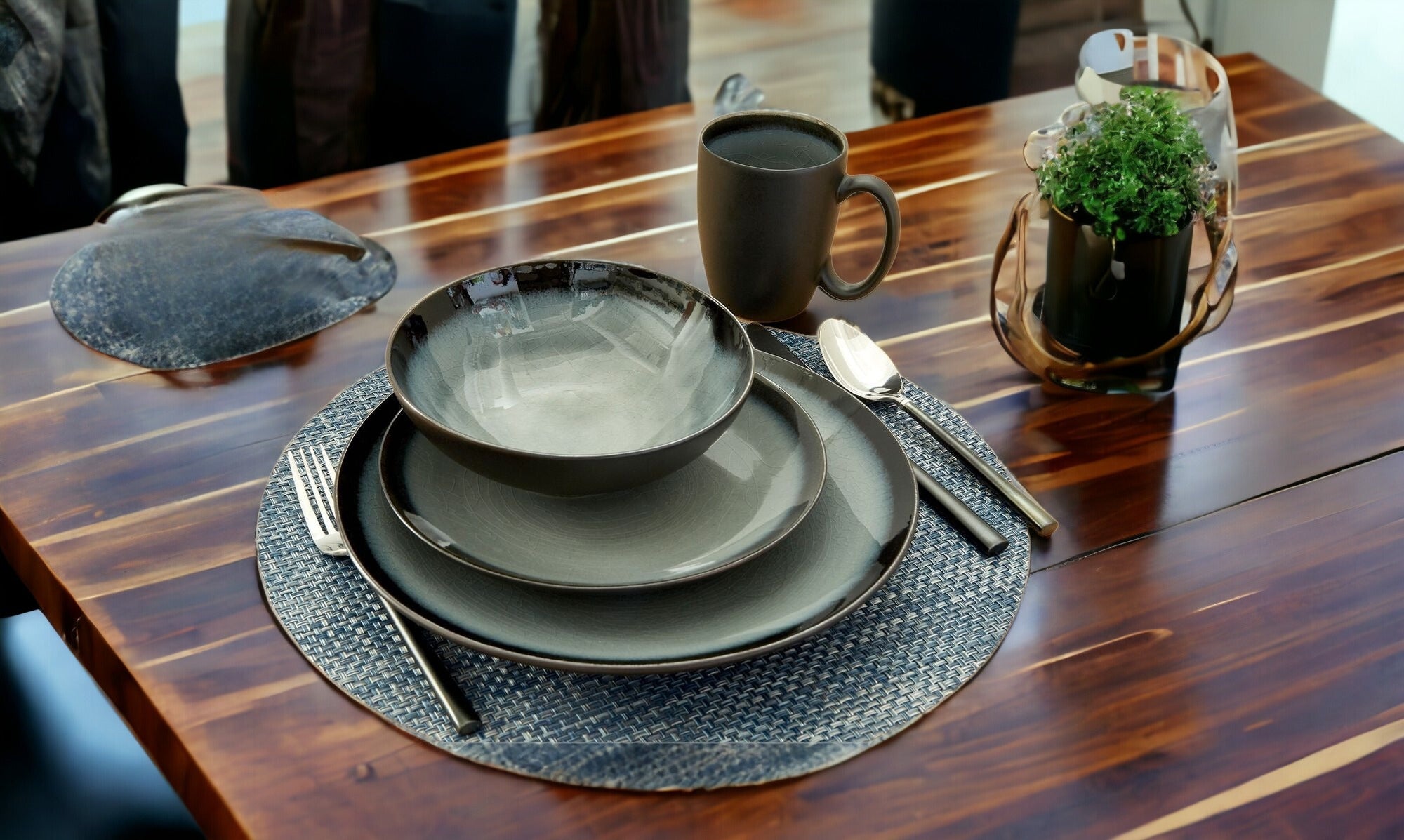 - Modern Green/Gray and Black Crackle, two-tone reactive glaze dinnerware set.