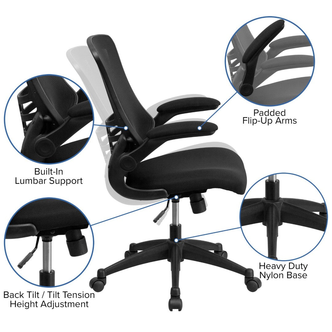 - Ergonomic Mesh Office Chair with Flip-Up Arms: 24.5"W x 25.5"D x 37.5-41.25"H