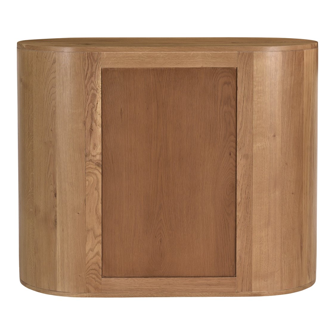 - Crafted from solid oak with a semi-gloss finish with oak veneer over MDF fully finished back