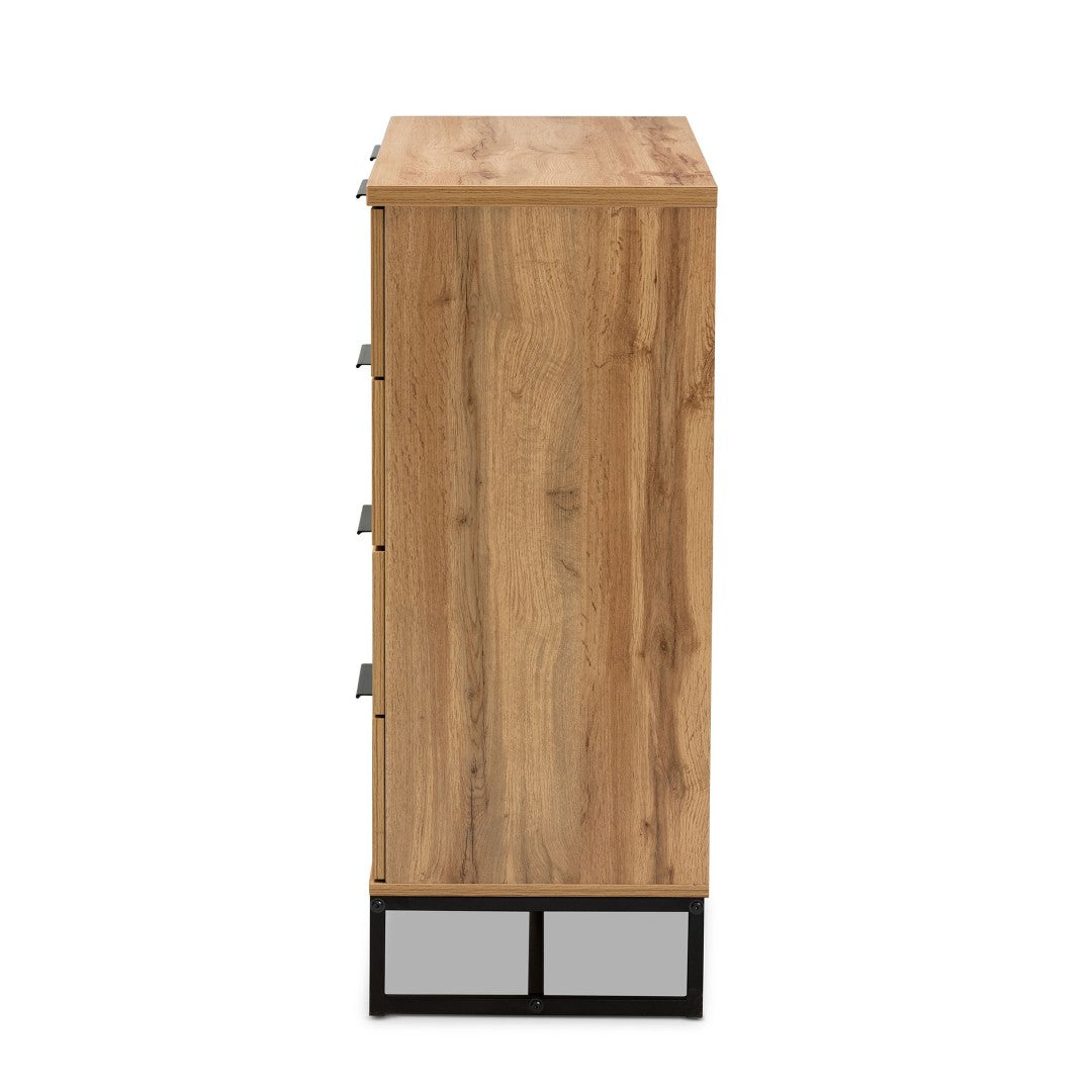 Give your bedroom a sleek, functional upgrade with this modern 5-drawer chest. Crafted from engineered wood with metal accents and an oak brown finish, it blends contemporary style with everyday practicality—offering roomy storage, durable construction, and clean-lined design that complements minimalist and modern décor.