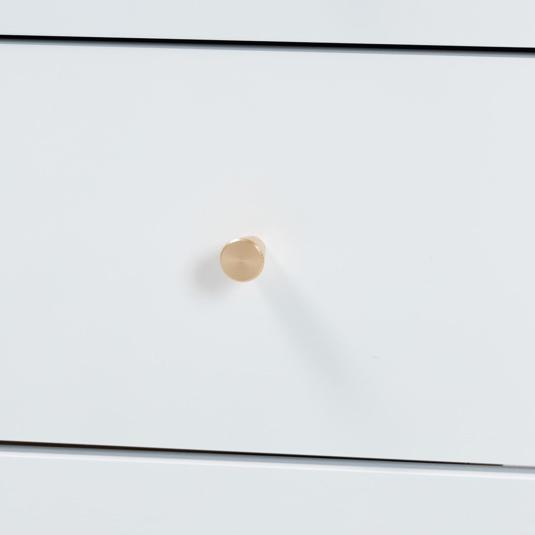 - Minimalist metal drawer pulls introduce a subtle touch of glamour