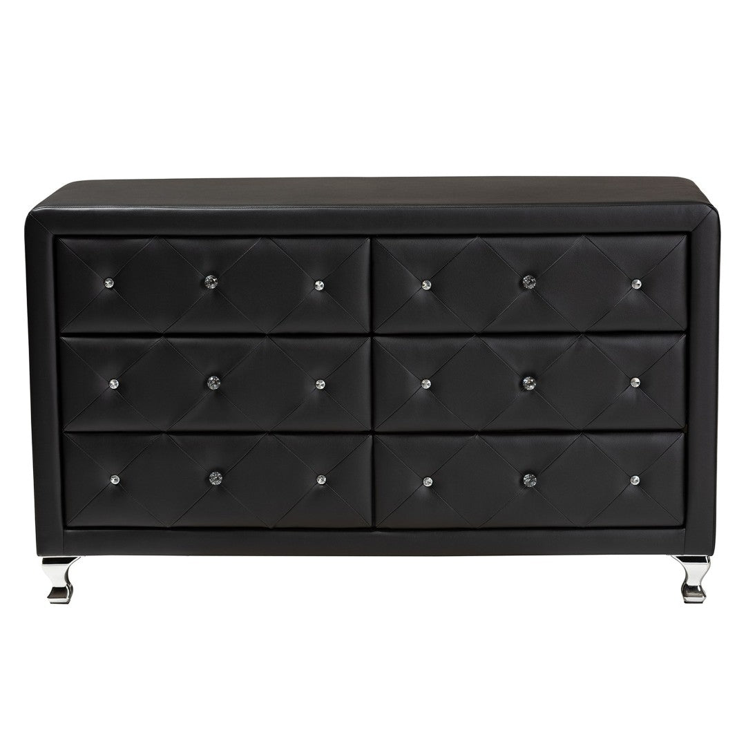 - Six drawers, each with faux crystal buttons and drawer pulls