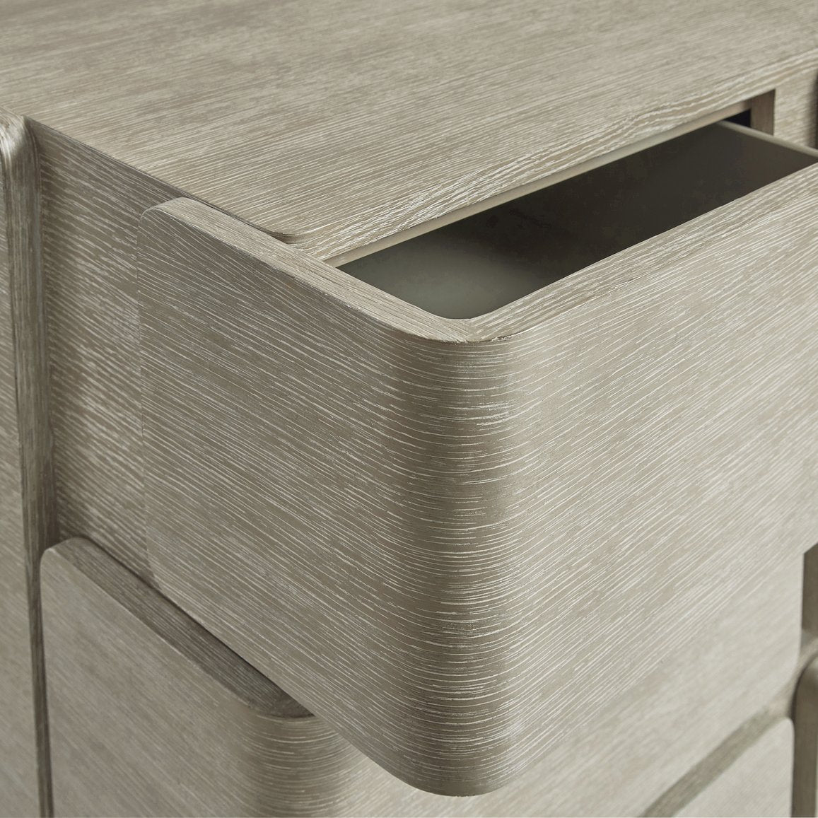 Elevate your bedroom with the Arcadia dresser — a refined, rustic-modern piece that blends clean lines with thoughtful details. Its wire-brushed quartered white oak finish in Clay highlights natural texture while the unique wrap-around drawer configuration and soft-close hardware deliver both style and everyday functionality.