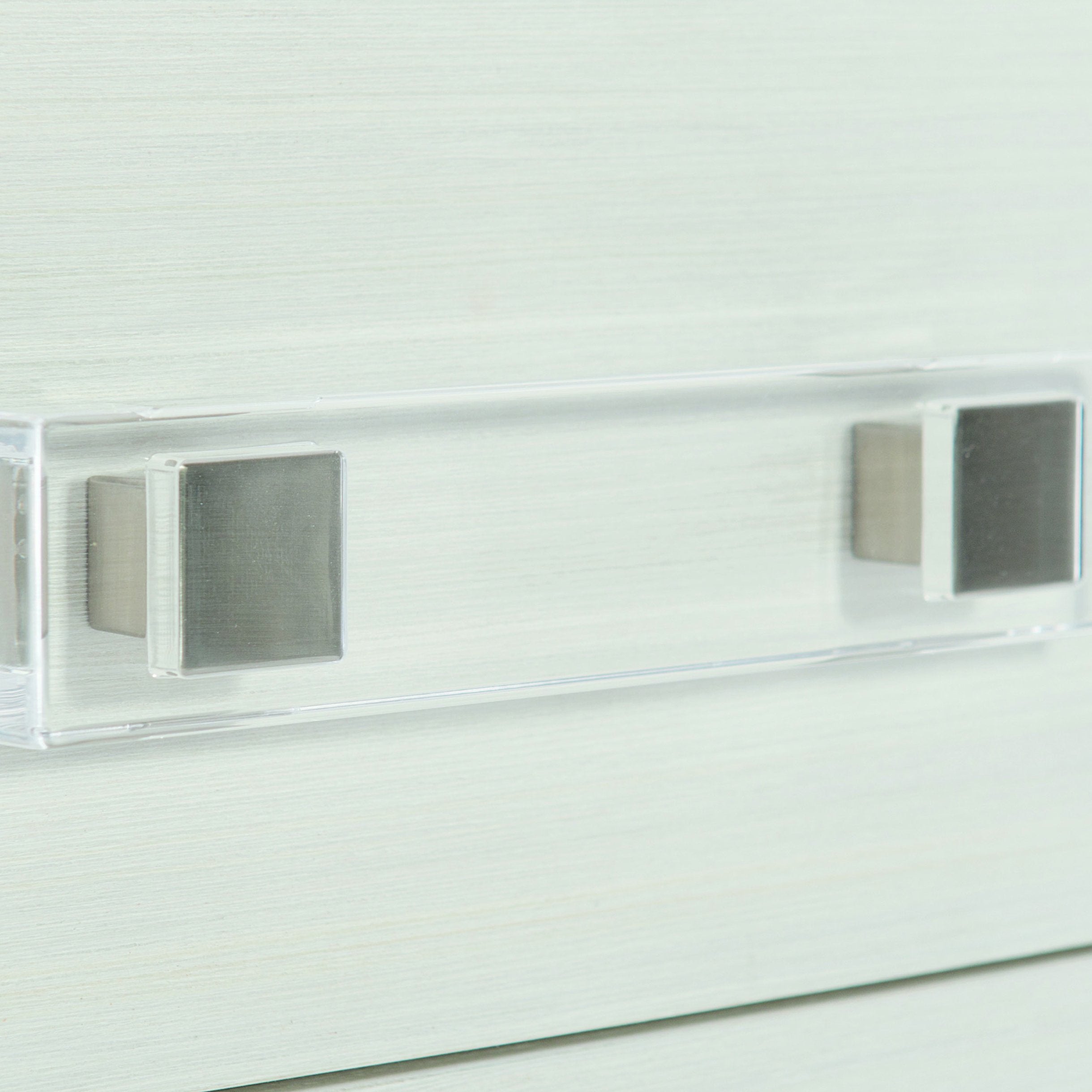 - Hardware: Clear acrylic combined with metal for a distinctive, contemporary look.