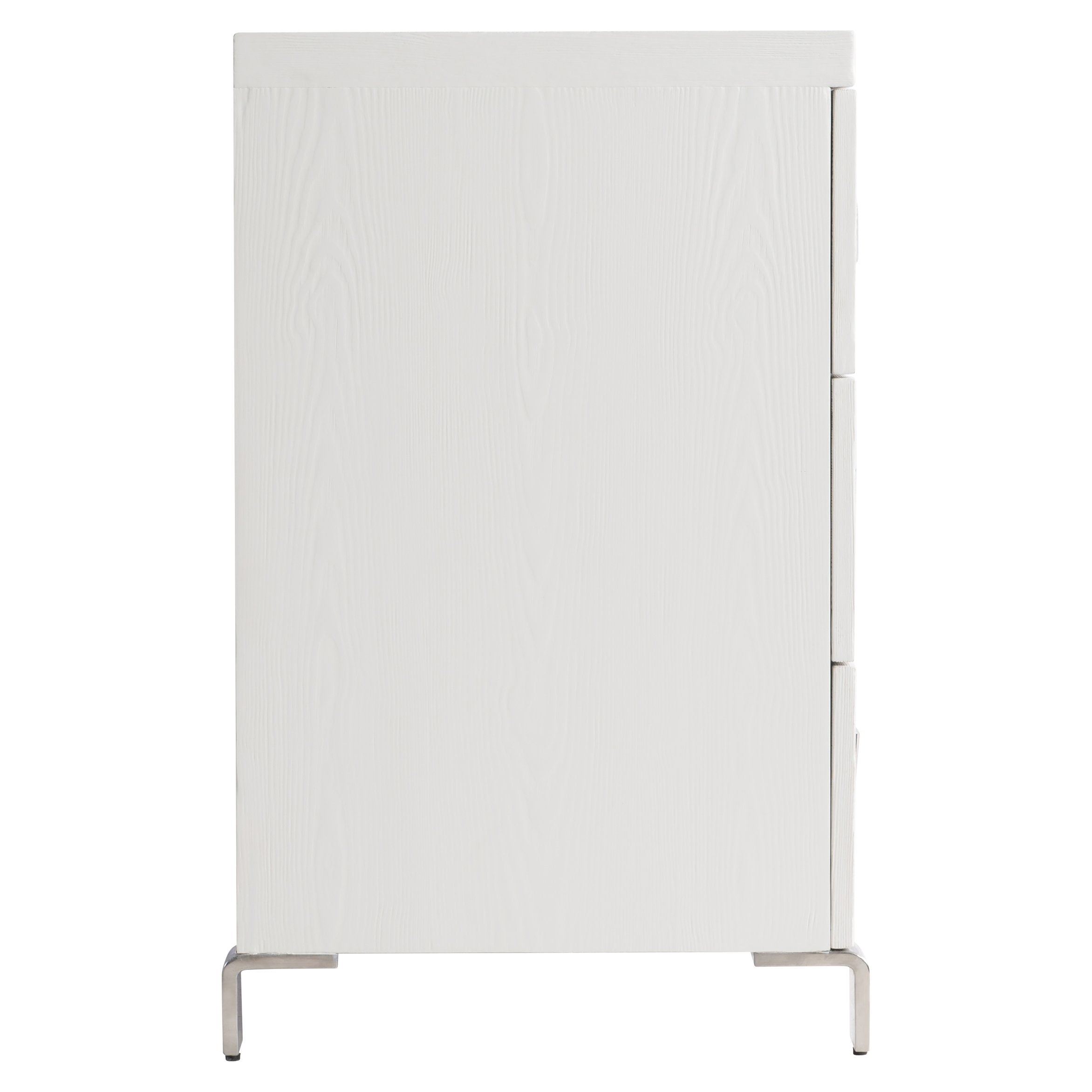 - Hardware: Polished stainless steel drawer pulls providing a dimensional, contemporary aesthetic