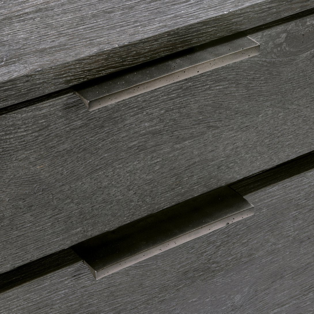 - Hardware: Cast aluminum tab pulls in Dark Graphite add a sleek, modern accent and contrast to the rustic wood.