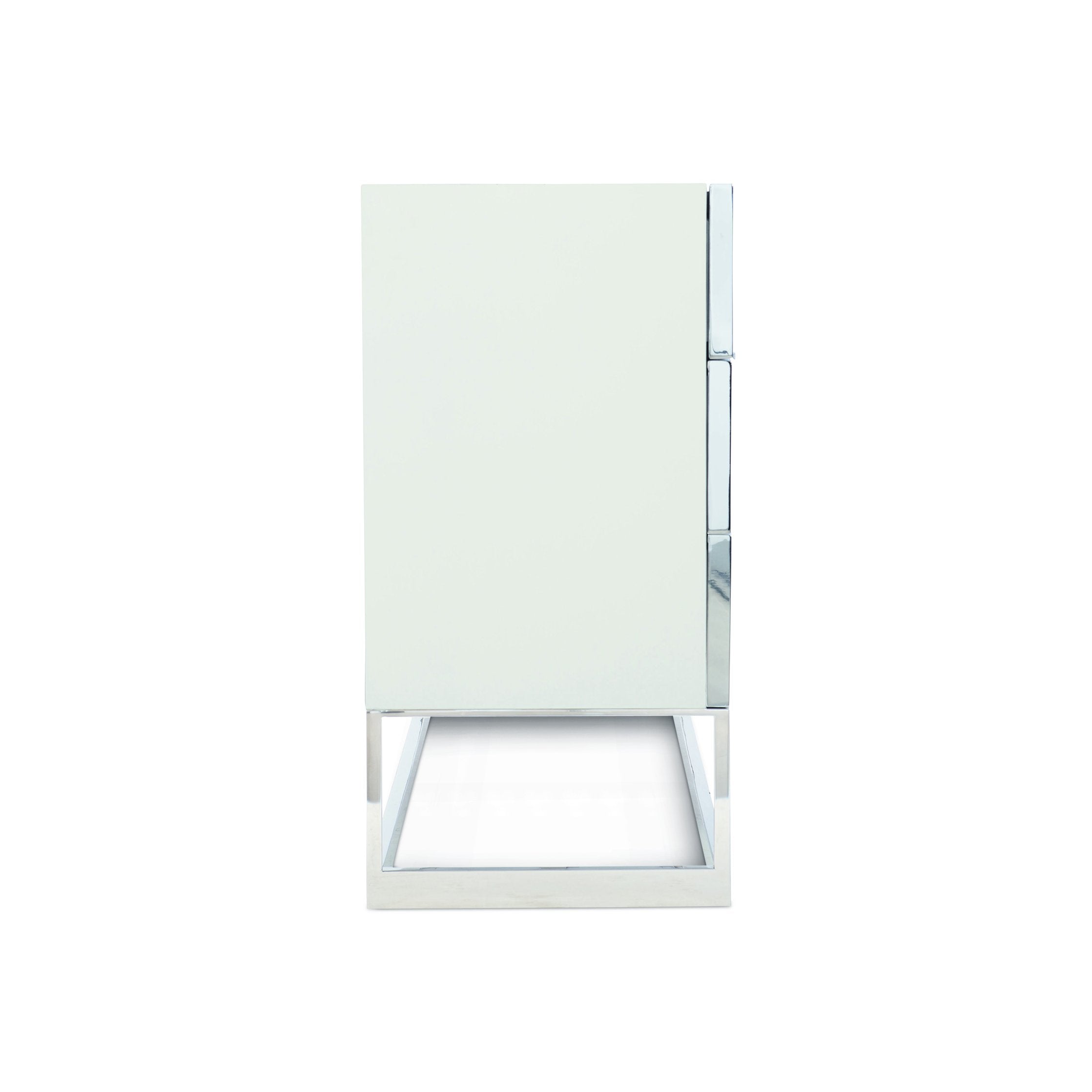 Elevate your bedroom with a striking blend of modern minimalism and refined craftsmanship. This dresser pairs a high-sheen white lacquer finish with polished stainless steel accents for a clean, architectural look that brightens any space while offering generous, organized storage.