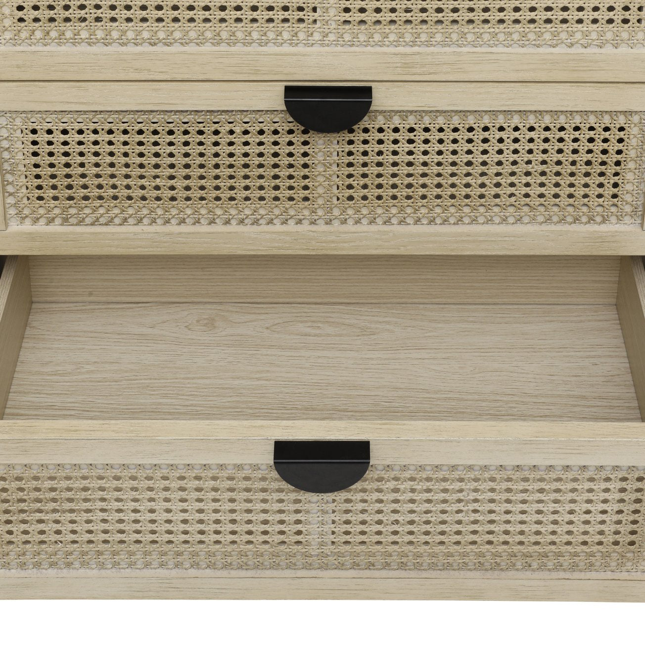 - Materials: Durable particle board and MDF construction with natural rattan skin on drawer fronts for a breathable, insect- and moth-resistant finish.
