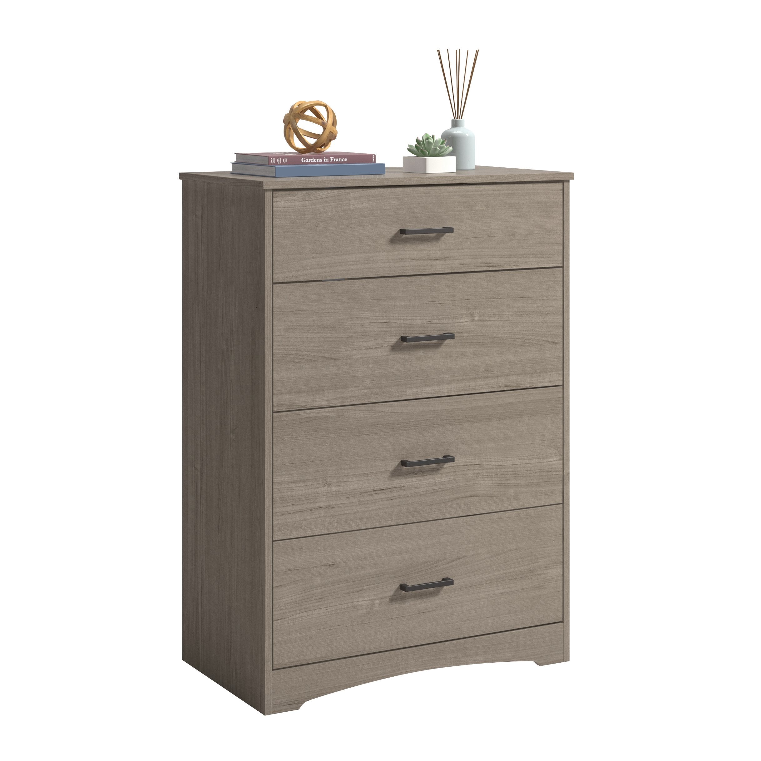 - Storage layout: One smaller top drawer for accessories and three large lower drawers for clothing, linens, or office supplies