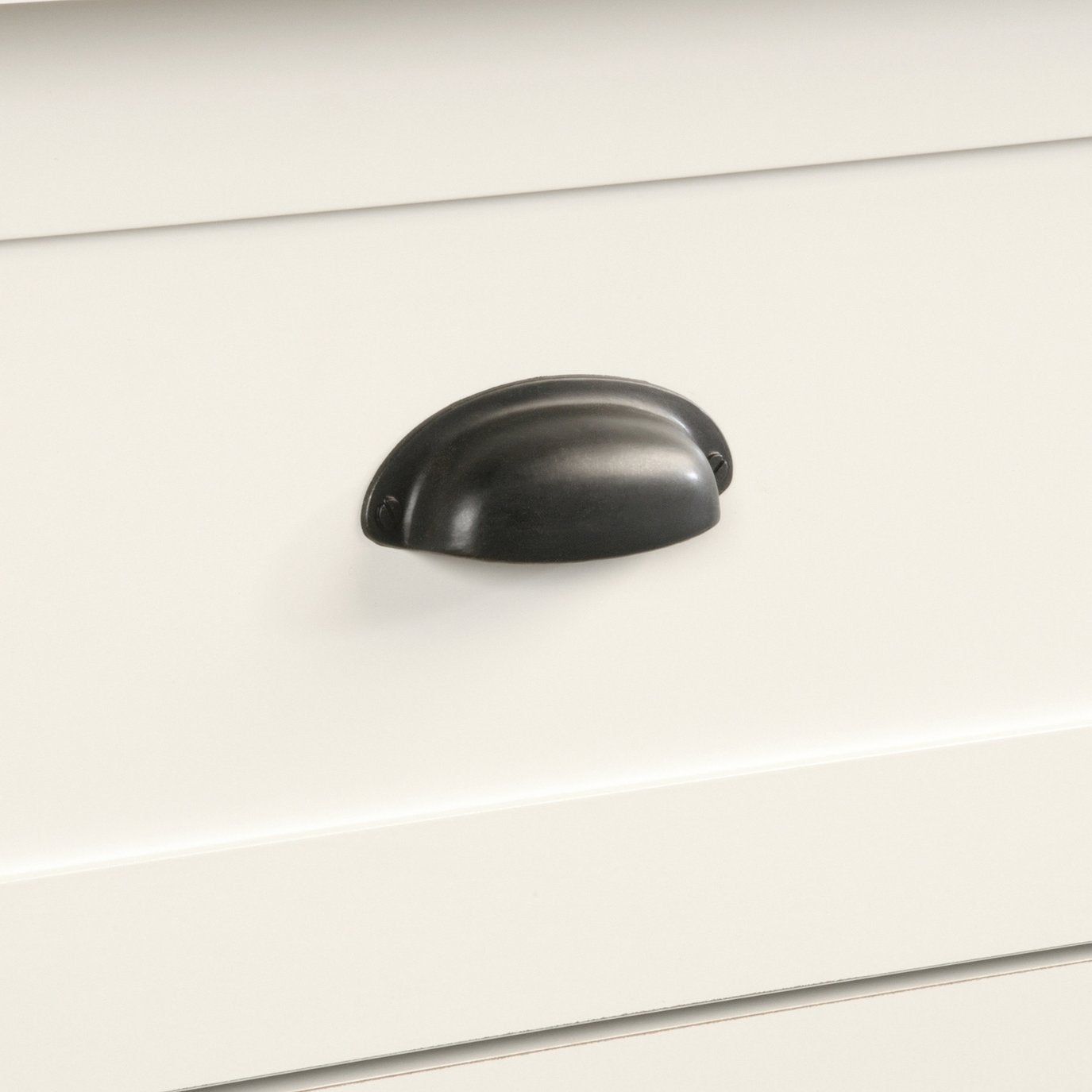 - Clean white finish complements any decor