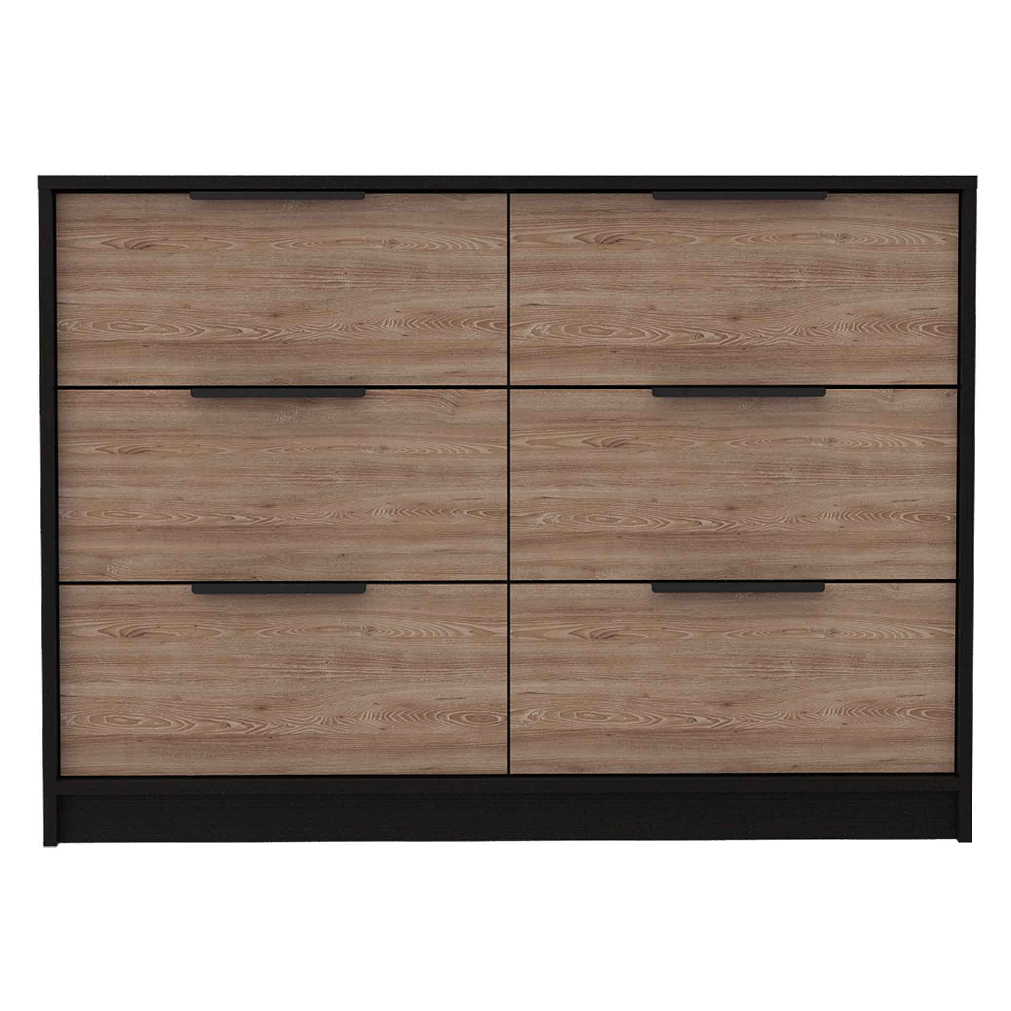 Elevate your bedroom with a contemporary two-tone dresser that blends modern lines and practical storage. The contrasting Wenge and Pine finishes highlight the wood-grain texture while the wide top and smartly designed lower cabinets provide versatile surface and hidden storage for clothing, accessories, and décor.